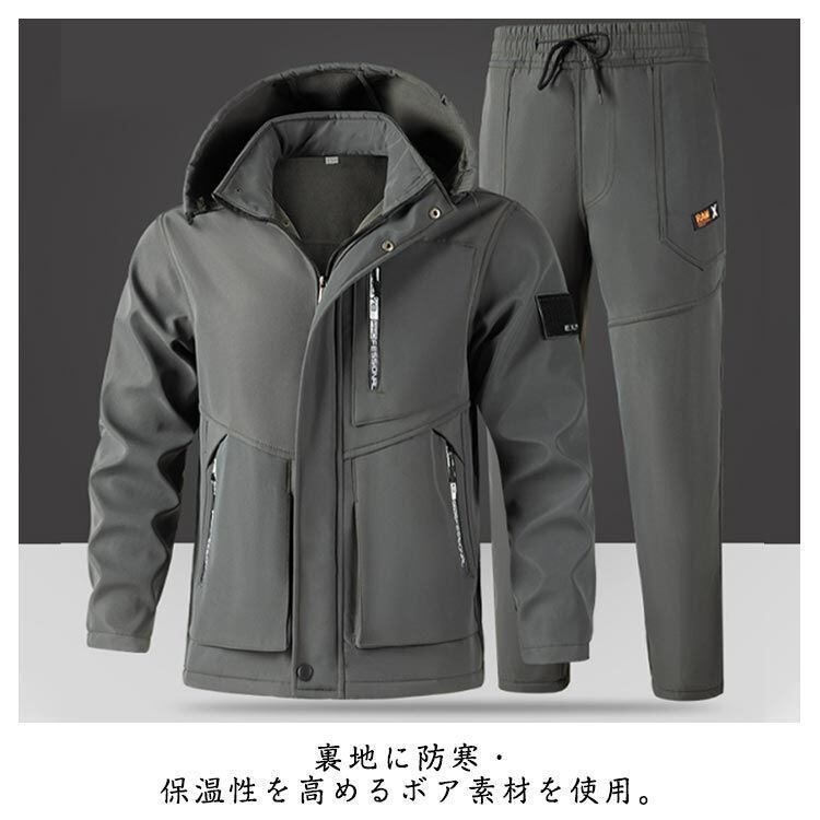 新品 メンズ マウンテンジャケット ワークパンツ 上下セット 撥水 防寒 防水 厚手 冬 裏起毛 マウンテンパーカー 暖かい 秋冬 防寒着 登山服 裏ボア ウインドブレーカー 作業着 防風 防寒パンツ 登山 kkkxzv