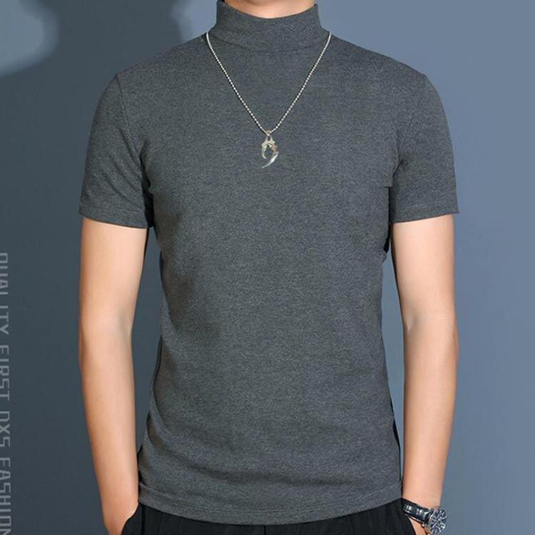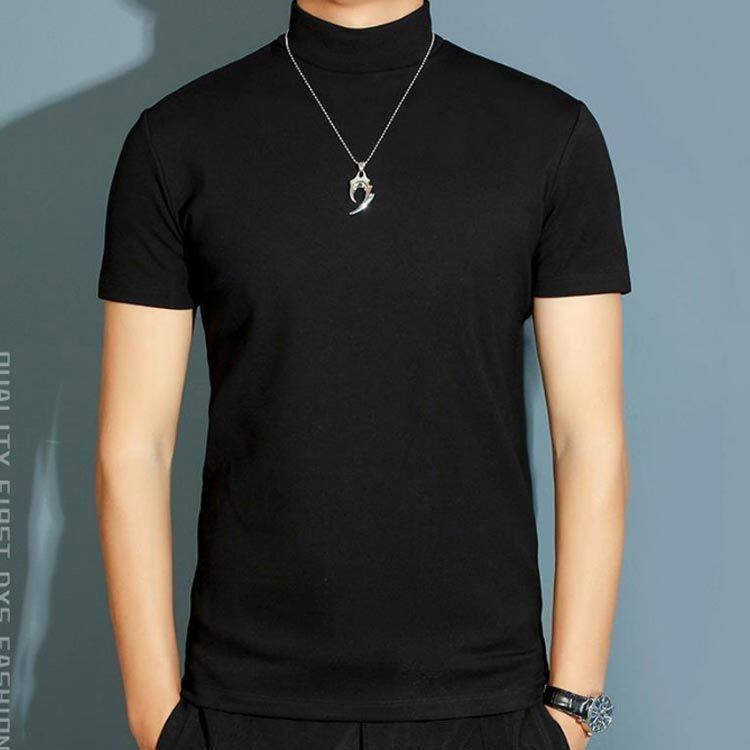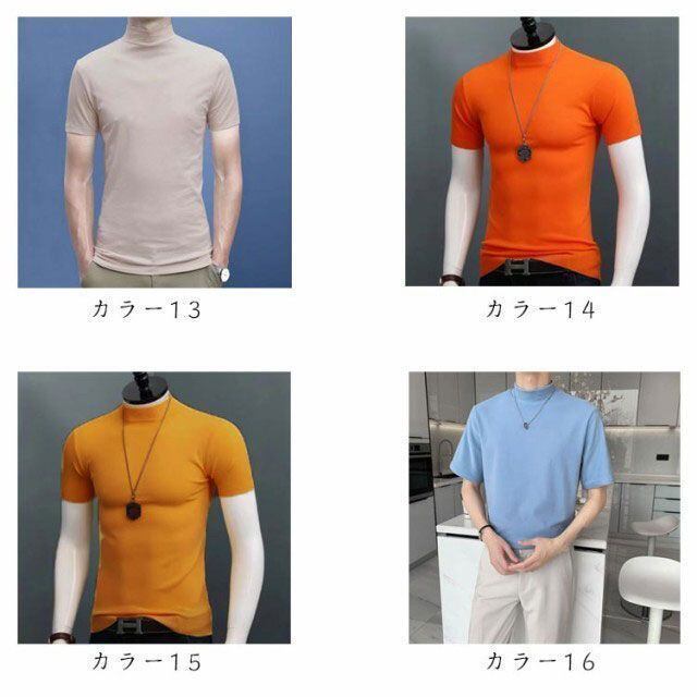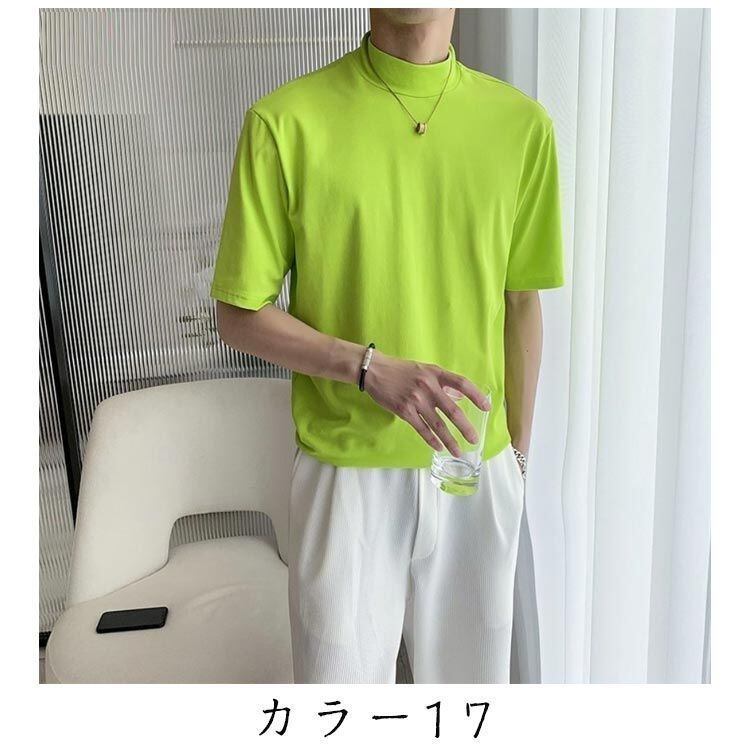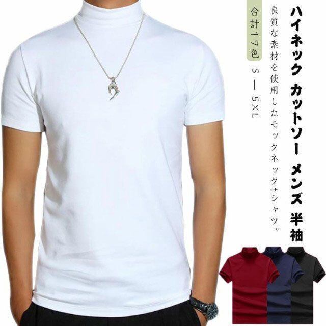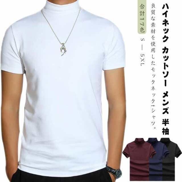 新品 ハイネック カットソー メンズ 半袖 Tシャツ 無地tシャツ 夏 ハイネックtシャツ ティーシャツ 半袖 トップス 無地 ゴルフウェア カジュアル kkkunu