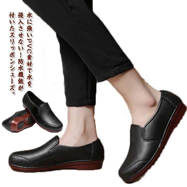水に強いPVC素材で水を侵入させない!防水機能が付いたスリッポンシューズ。