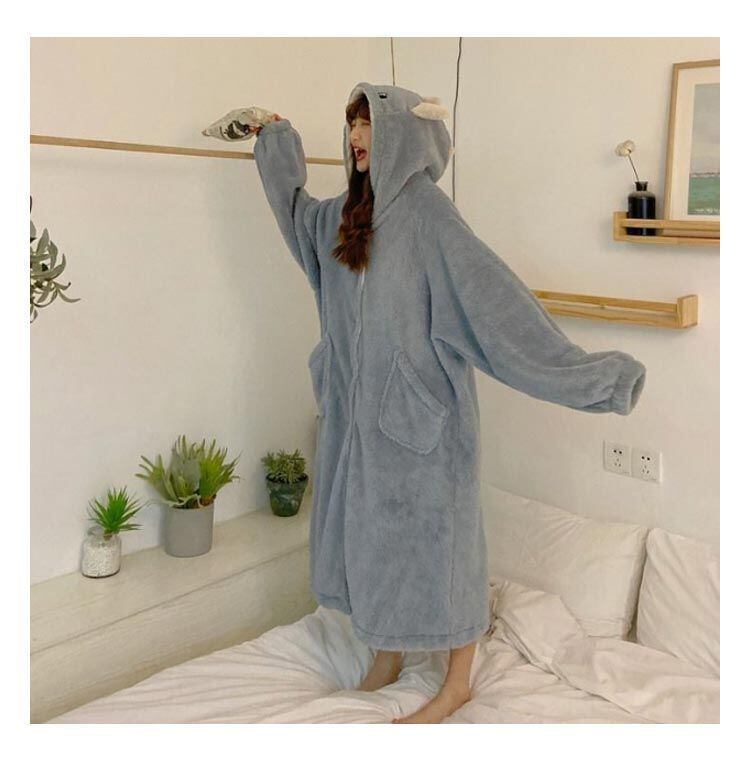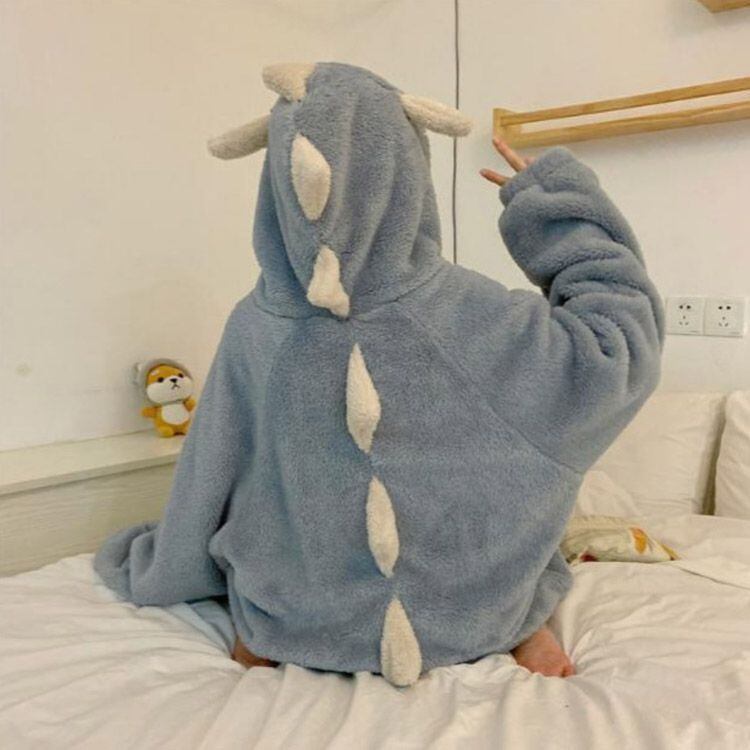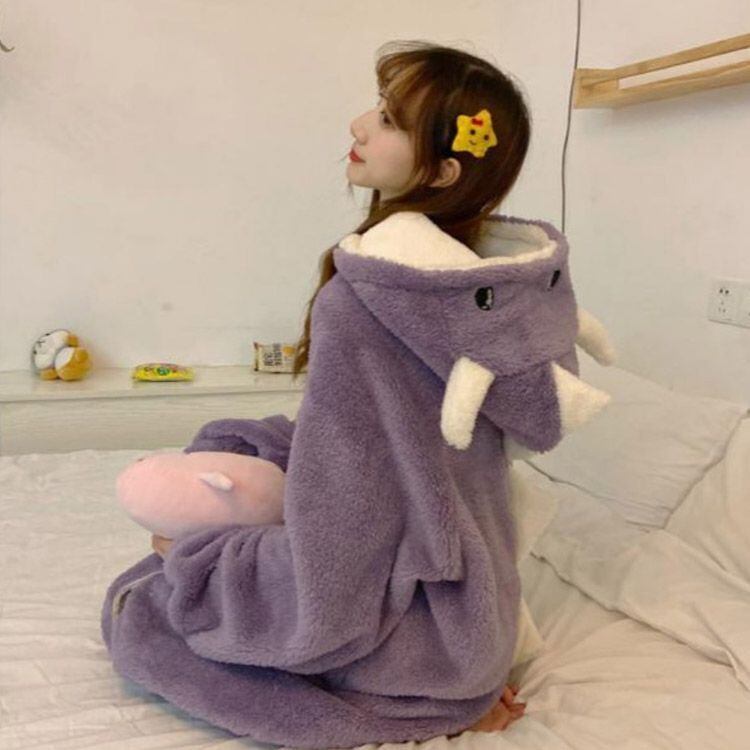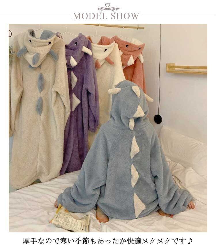 新品 ルームウェア 冬用 レディース ワンピース ロング パジャマ 恐竜 怪獣 サメ 鮫 フード付き パーカー ガウン カーディガン 着る毛布 着ぐるみ 長袖 フリース ふわふわ アニマル 部屋着 寒さ対策 kkkyhl