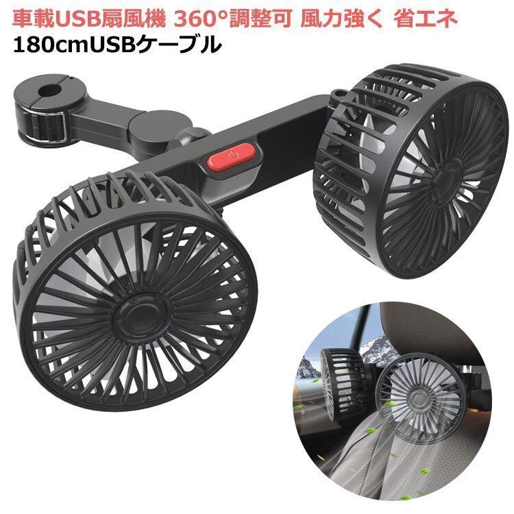 新品 車載ファン扇風機 ツインファン 車載扇風機 車載ファン USB充電 5V 熱対策 シアシート車載扇風機 低騒音 強風量 多車種対応 前部用 後部座席用 車中泊 三段階風量調節可 汎用タイプ 夏対策 kkkzuu