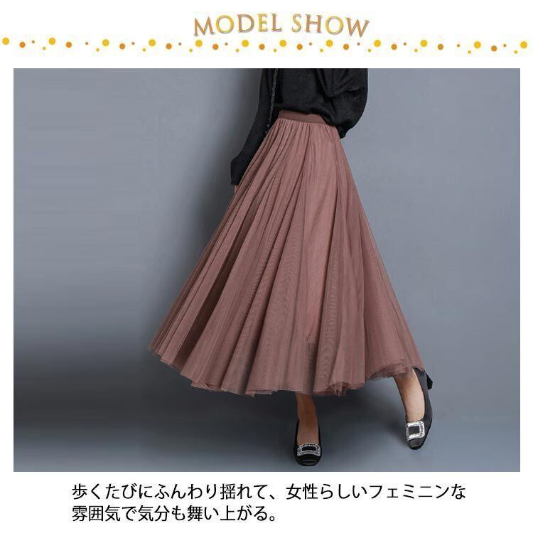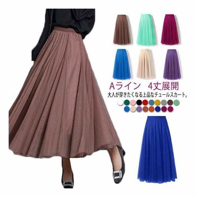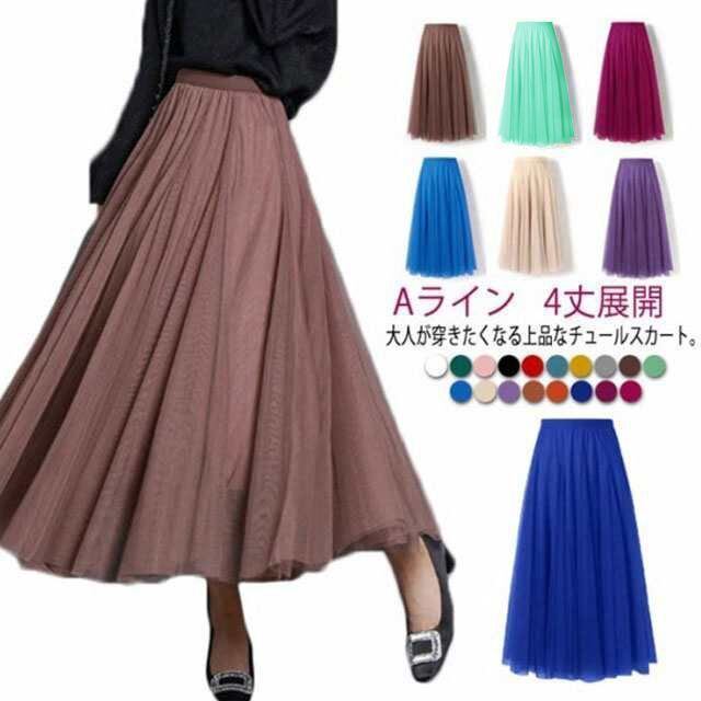 新品 スカート チュールスカート フレアスカート ロング ウエストゴム 裏地付き Aライン スカート 春 ミモレ丈 ふんわり プリーツスカート 4丈展開 無地 ボリューム 広がる裾 フレア/Aライン ロング kkkvun