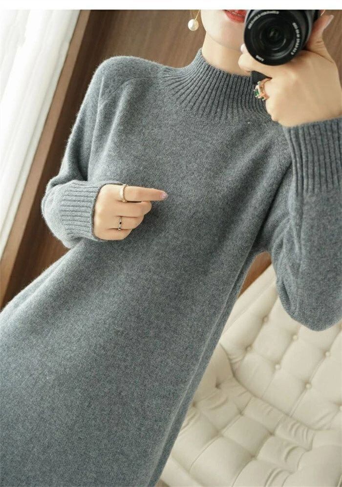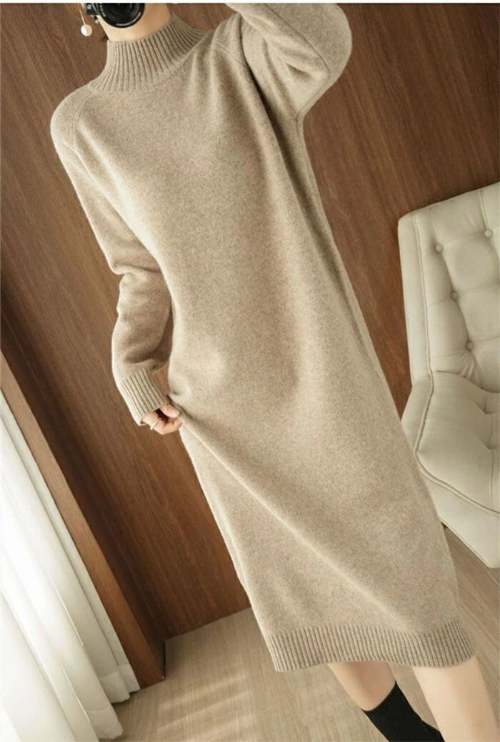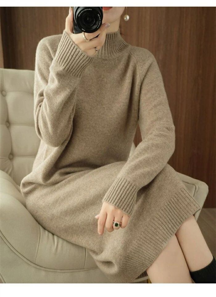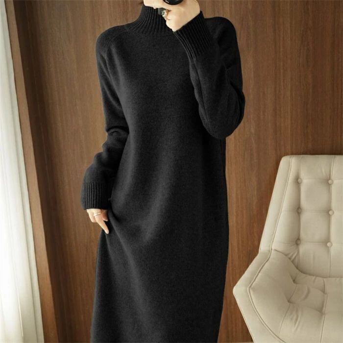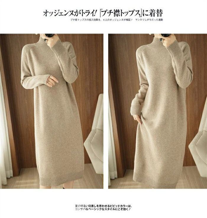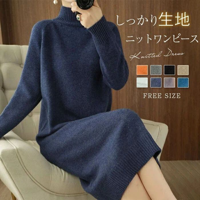 ニット ワンピース レディース ハイネック タートルネック ロング ワンピース ワンピ 無地 長袖 リブニット ワンピース 秋 冬 ニットワンピース ロング丈 おしゃれ ゆったり 通勤 OL 着痩せ 大きいサイズ 体型カバー 30代 40代 50代 無地 厚手 送料無料