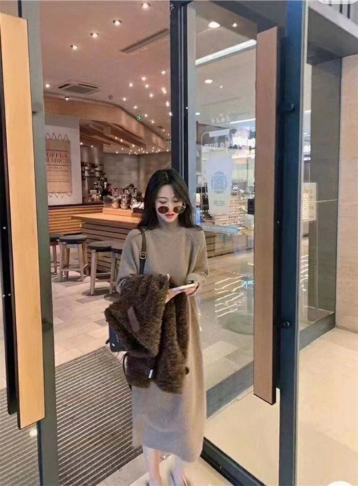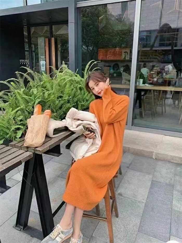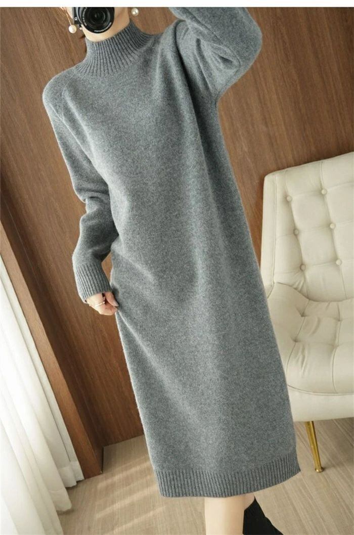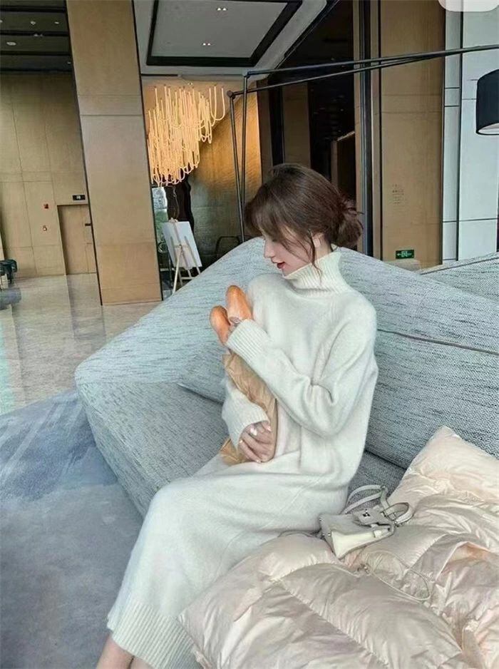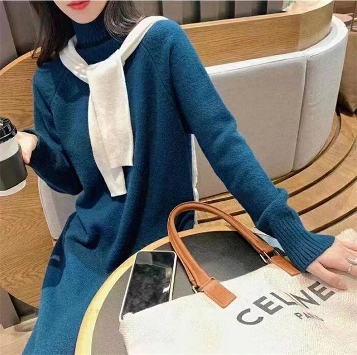 ニット ワンピース レディース ハイネック タートルネック ロング ワンピース ワンピ 無地 長袖 リブニット ワンピース 秋 冬 ニットワンピース ロング丈 おしゃれ ゆったり 通勤 OL 着痩せ 大きいサイズ 体型カバー 30代 40代 50代 無地 厚手 送料無料