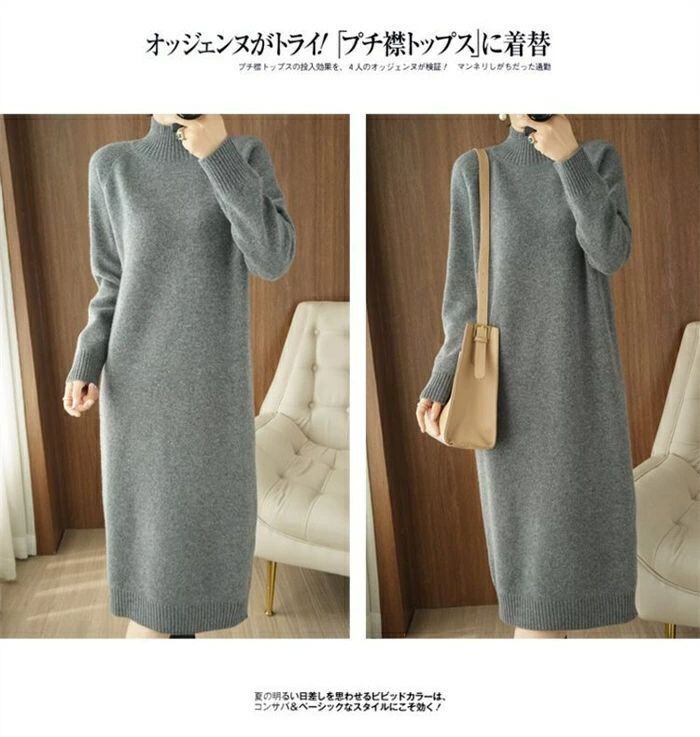 ニット ワンピース レディース ハイネック タートルネック ロング ワンピース ワンピ 無地 長袖 リブニット ワンピース 秋 冬 ニットワンピ