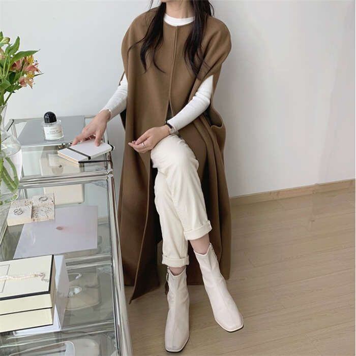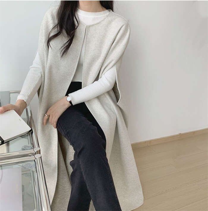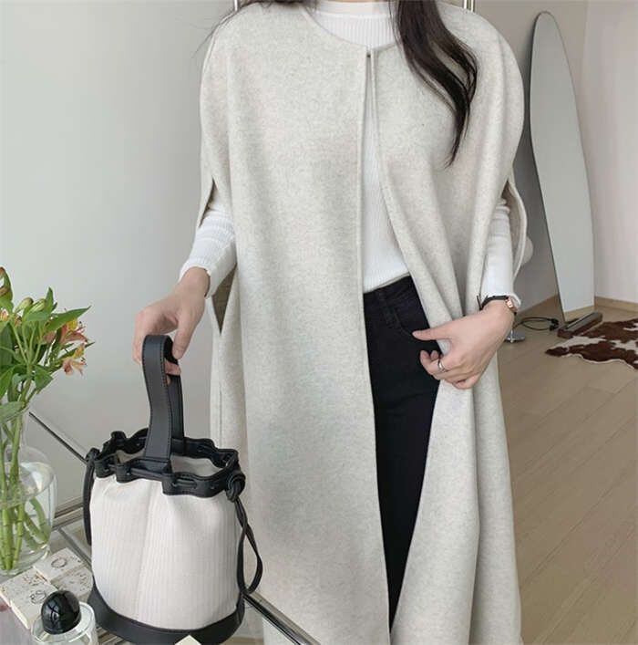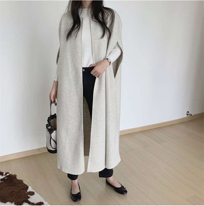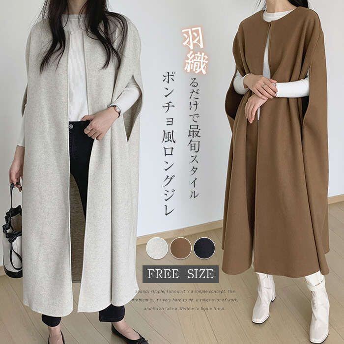 ポンチョ ジレ ベスト レディース トレンチベスト 春 秋 秋 トップス アウター ノースリーブ レイヤード 重ね着 ロングベスト 羽織り ジャ