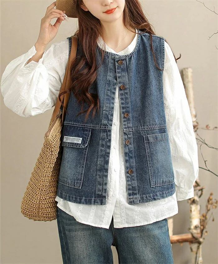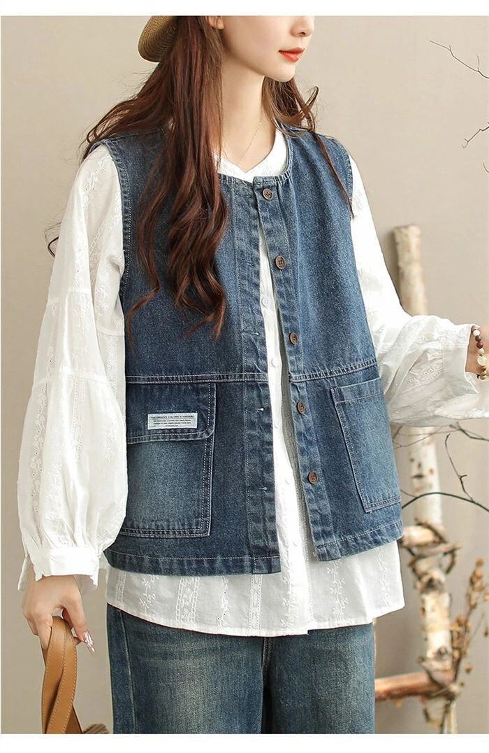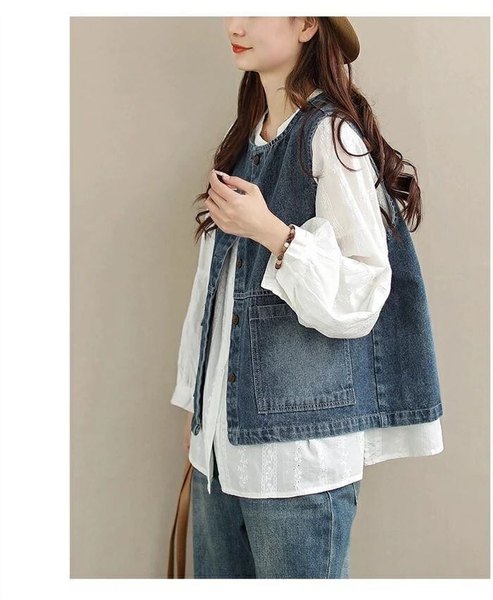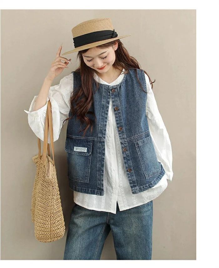 デニム ベスト ジレ レディース デニム ジレ ノースリーブ トップス ジレベスト デニムベスト ノーカラー 春 秋 冬 大きいサイズ 前開き ベストジレ ベスト 重ね着 レイヤード風 カーディガン 大人 カジュアル アウター ジャケット デニム 新作 羽織り可愛い 送料無料 通勤 OL コーデ 着回し 前開きベストジレ 通勤 OL 20代 30代 40代 50代 60代