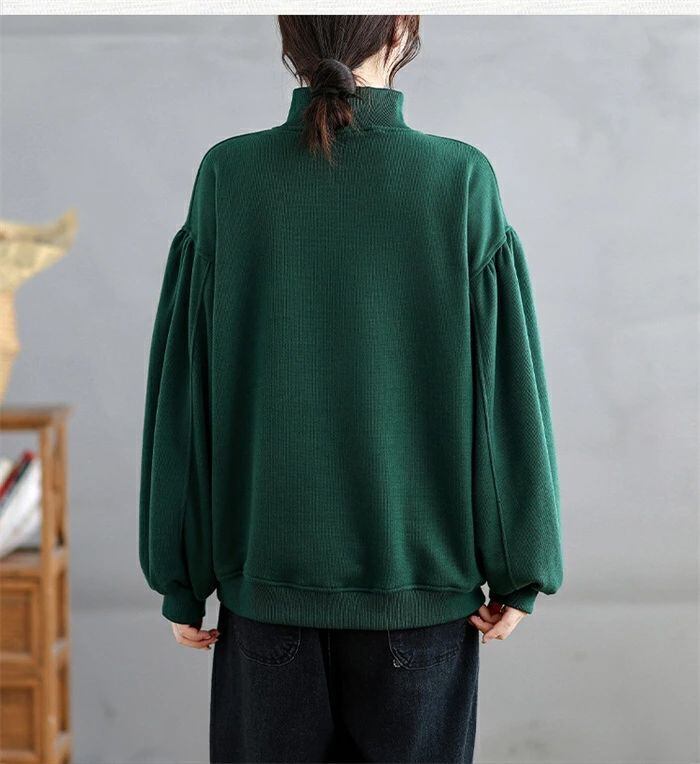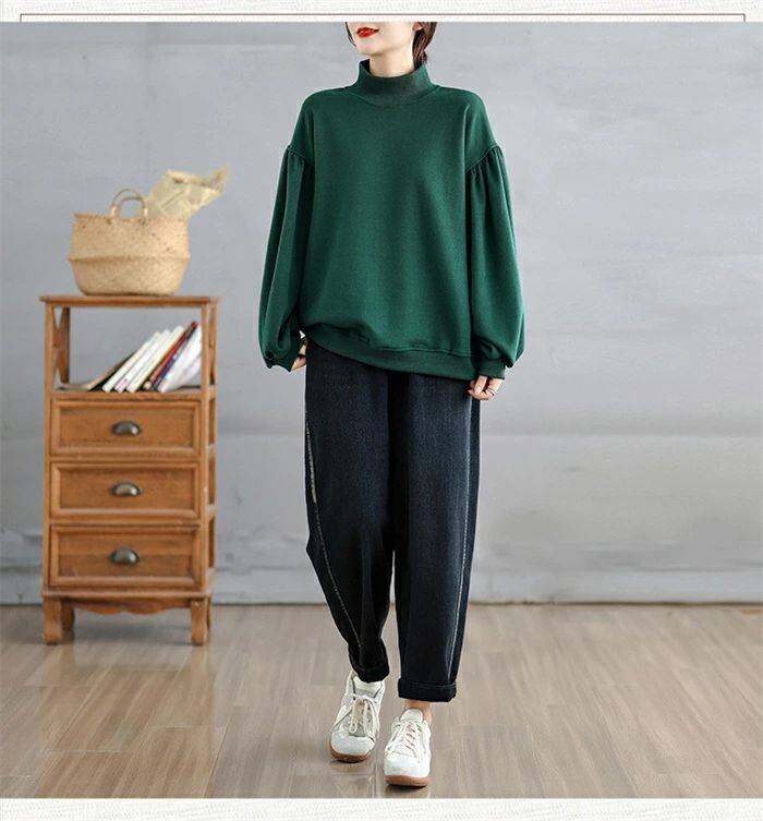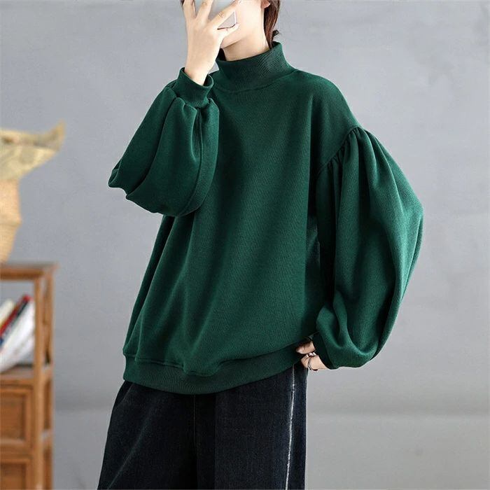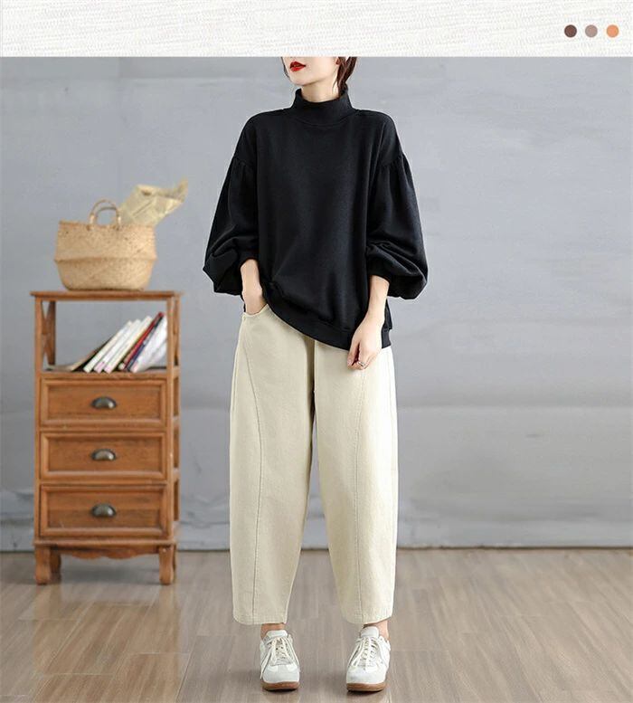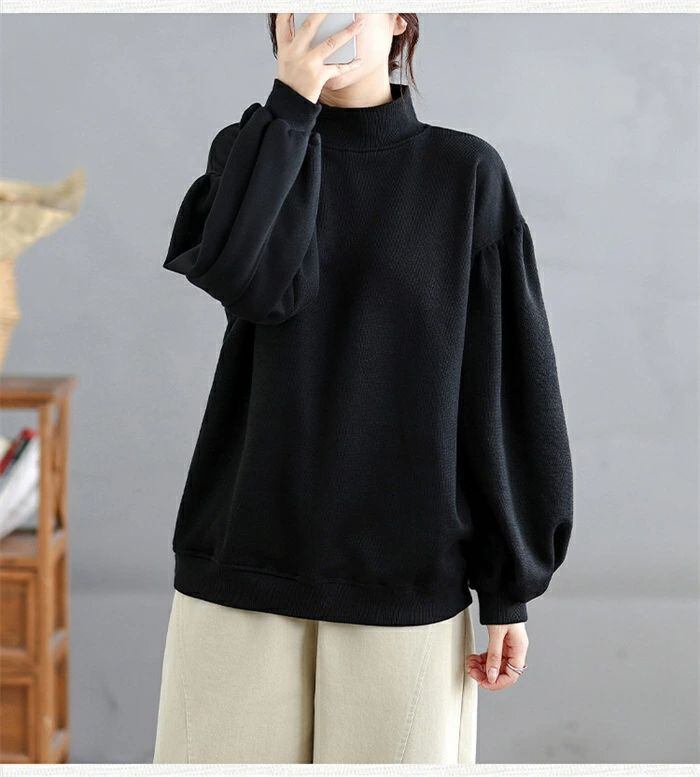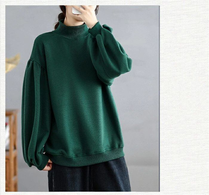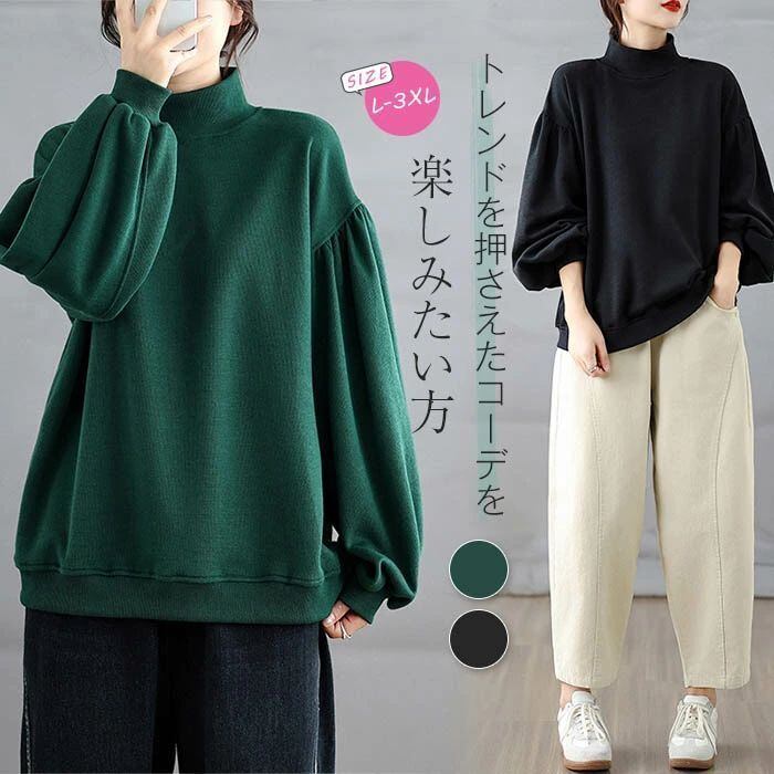 tシャツ トレーナー レディース トップス Tシャツ 長袖 きれいめ ボリューム袖 プルオーバー カットソー ビッグ ゆる ぽわん袖 バルーン袖 チュニック丈 ハイネック ベーシック ルーズ 大きいサイズ 綿 コットン ゆる感 秋 冬 こなれ感 大人 カジュアル 無地 送料無料 カジュアル オフィス ナチュラル 定番 可愛い
