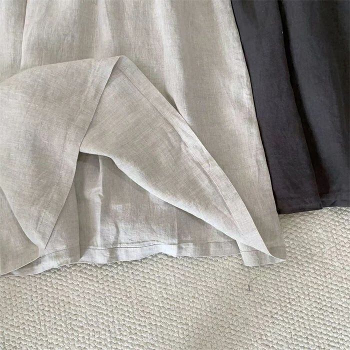 ト無地スカート綿麻混スカートプリーツスカートリネンスカートサロペット