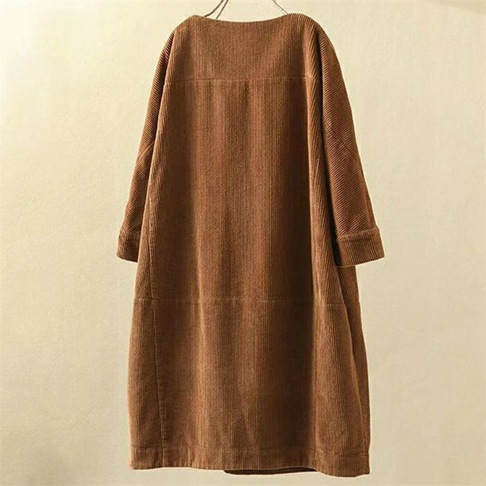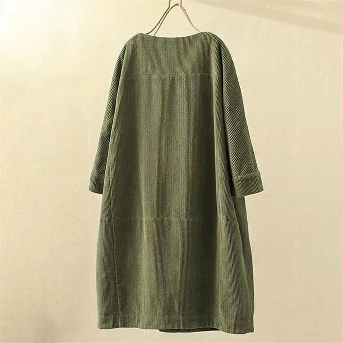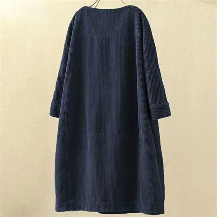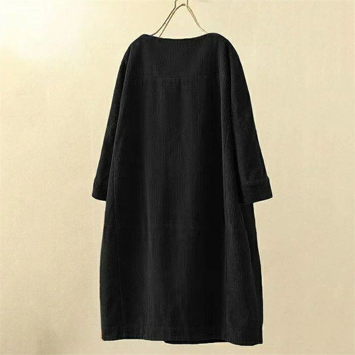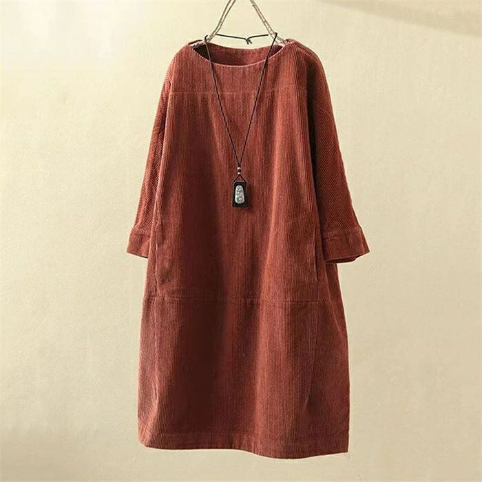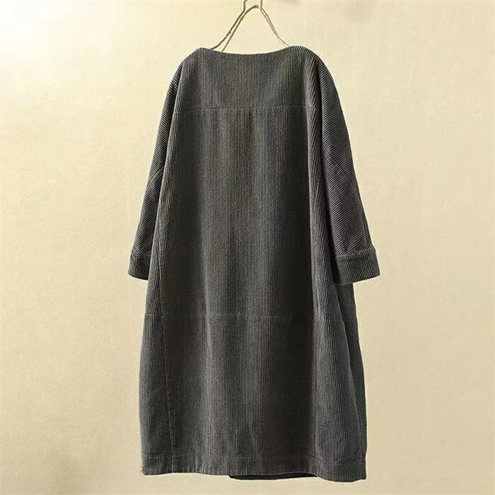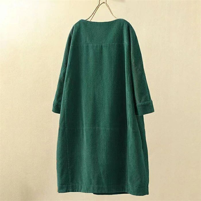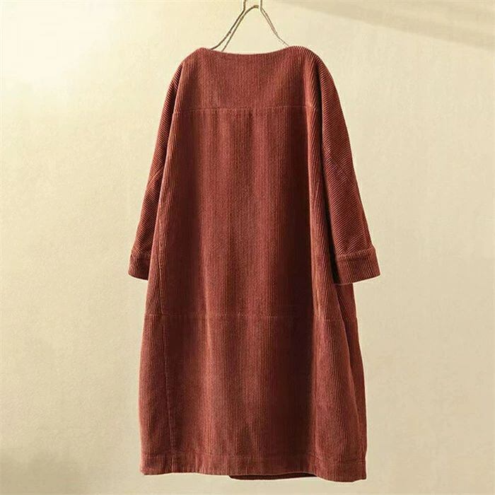 コーデュロイワンピース レディース 秋冬 コーデュロイ ワンピース ロングワンピース ロング丈 チュニック ラウンドネック 七分袖 無地 クルーネック 丸首 ゆったり 大きいサイズ 体型カバー 着?せ 森ガール レトロ 大人可愛い きれいめ シンプル カジュアル おしゃれ