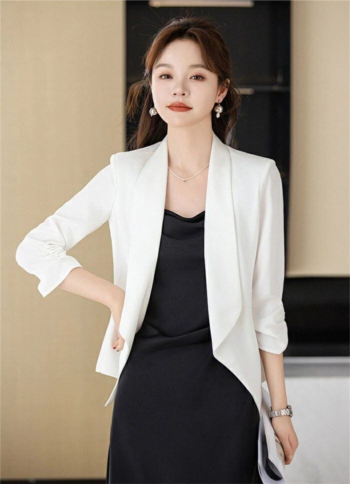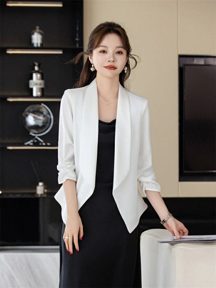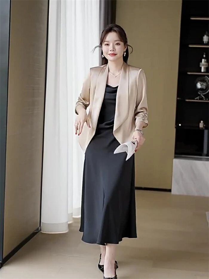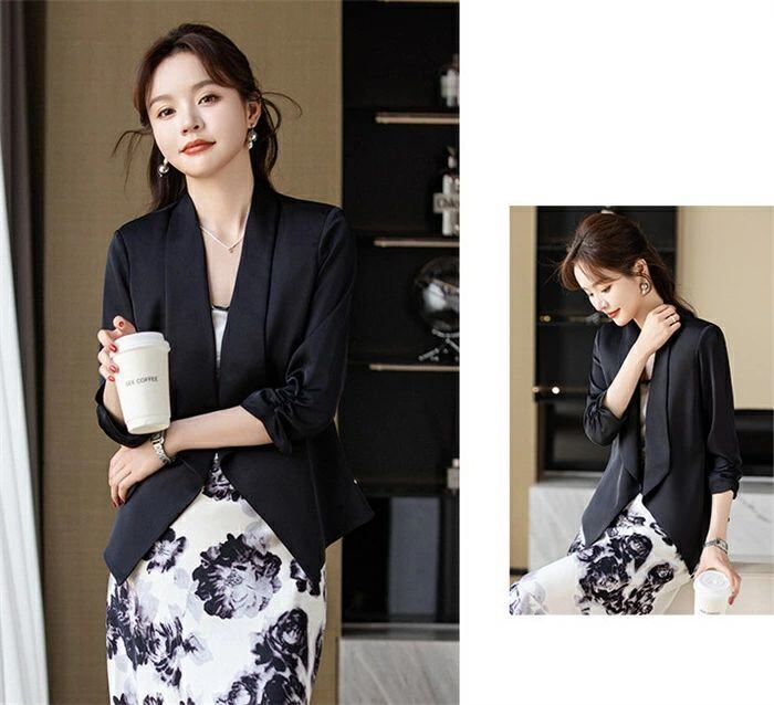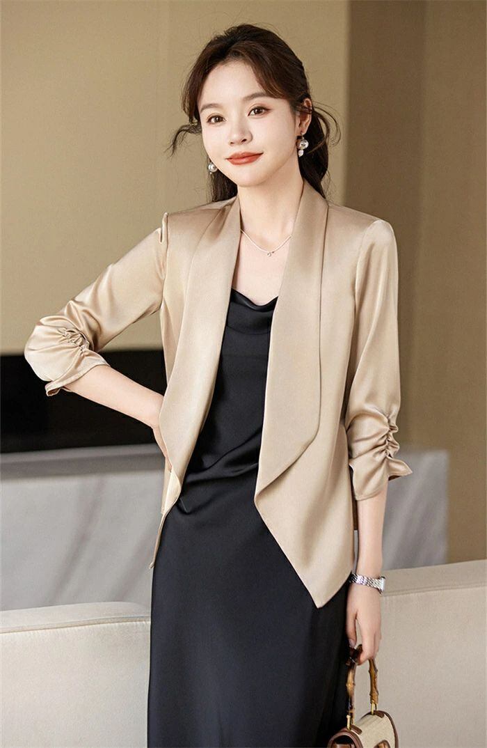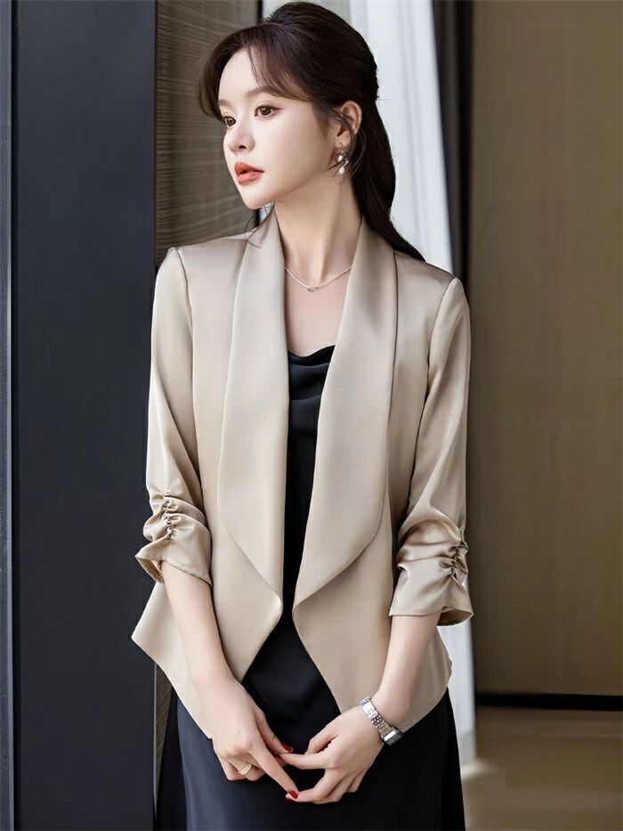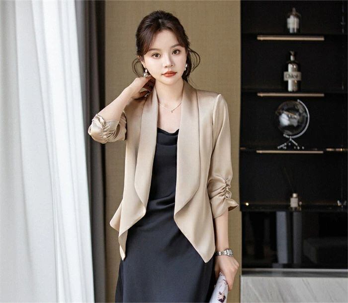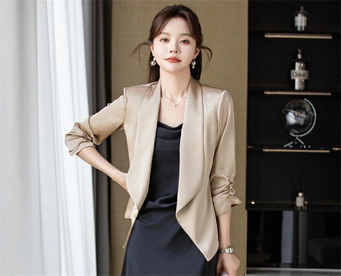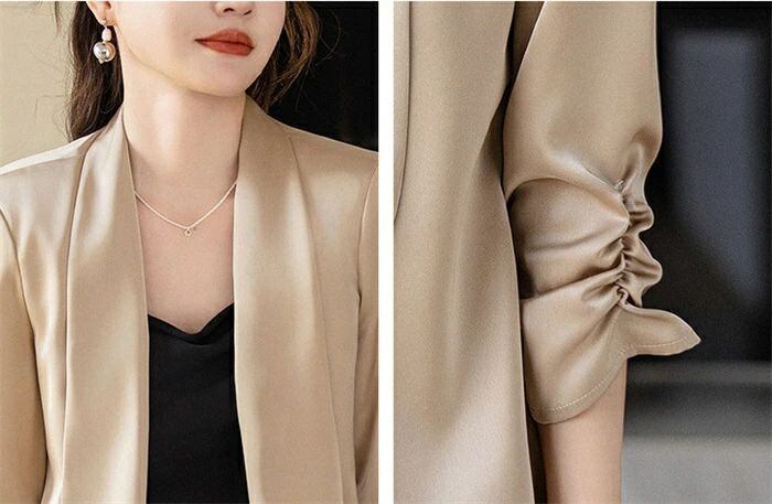 テーラードジャケット サテン サテンジャケット ジャケット レディース スーツジャケット 七分袖 スーツ 長袖 オフィス コート 上着 トップス 通勤OL ビジネス トップス 体型カバー ゆったり 着痩せ お洒落 高級 大人 フォーマル 上品 エレガント 20代 30代 40代 50代 送料無料
