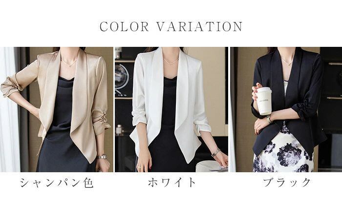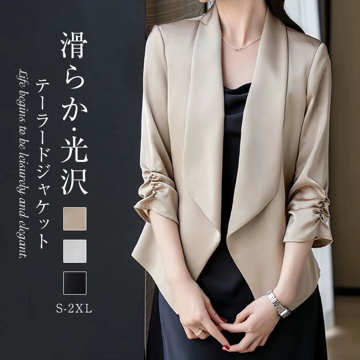 テーラードジャケット サテン サテンジャケット ジャケット レディース スーツジャケット 七分袖 光沢感 スーツ 長袖 オフィス コート 上着