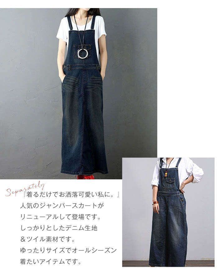 デニムサロペットスカート レディース マキシ丈ツイルスカートサロペット ツイルワンピース サロペット スカート カジュアルワンピース ジ