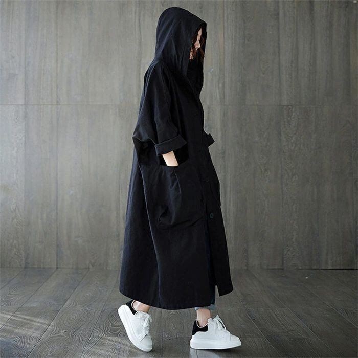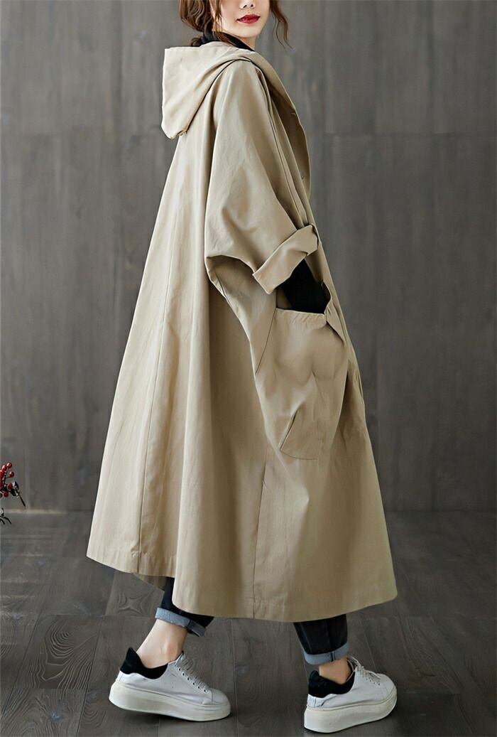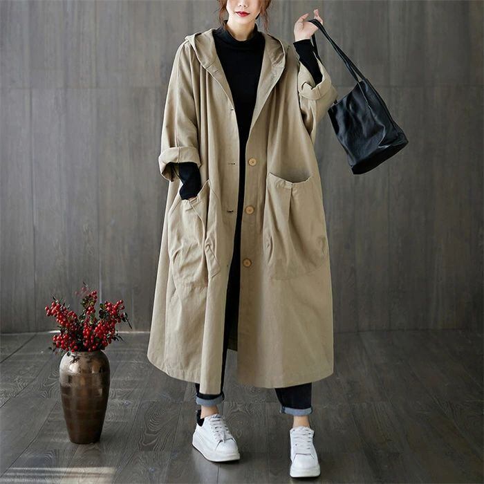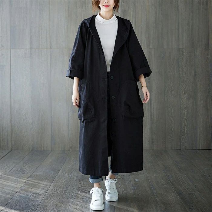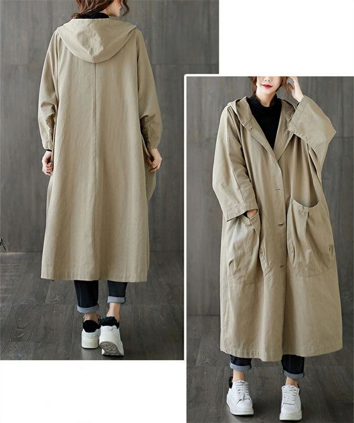 スプリングコート レディース 春秋 コート アウター ロングコート トレンチコート ロング丈 長袖 フード付き 前開き 羽織り 春秋着 ゆったり 体型カバー 大きいサイズ おしゃれ ジャケット レトロ感 通勤 通学 20代 30代 40代 50代 送料無料