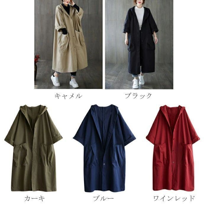 スプリングコート レディース 春秋 コート アウター ロングコート トレンチコート ロング丈 長袖 フード付き 前開き 羽織り 春秋着 ゆった