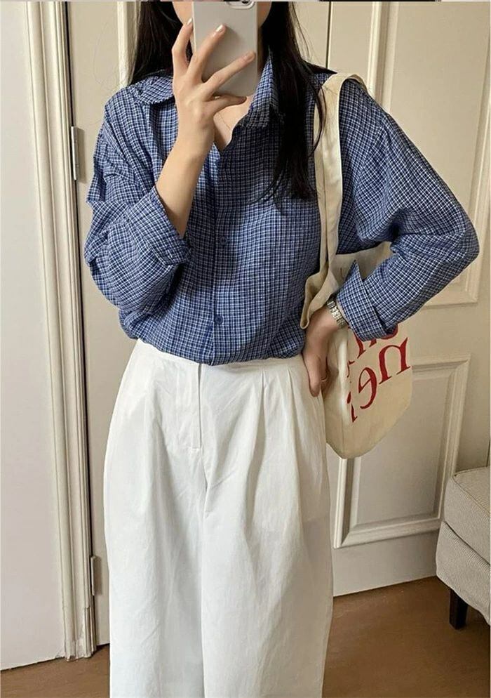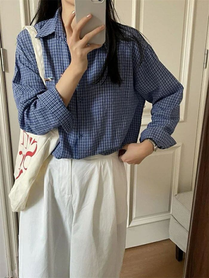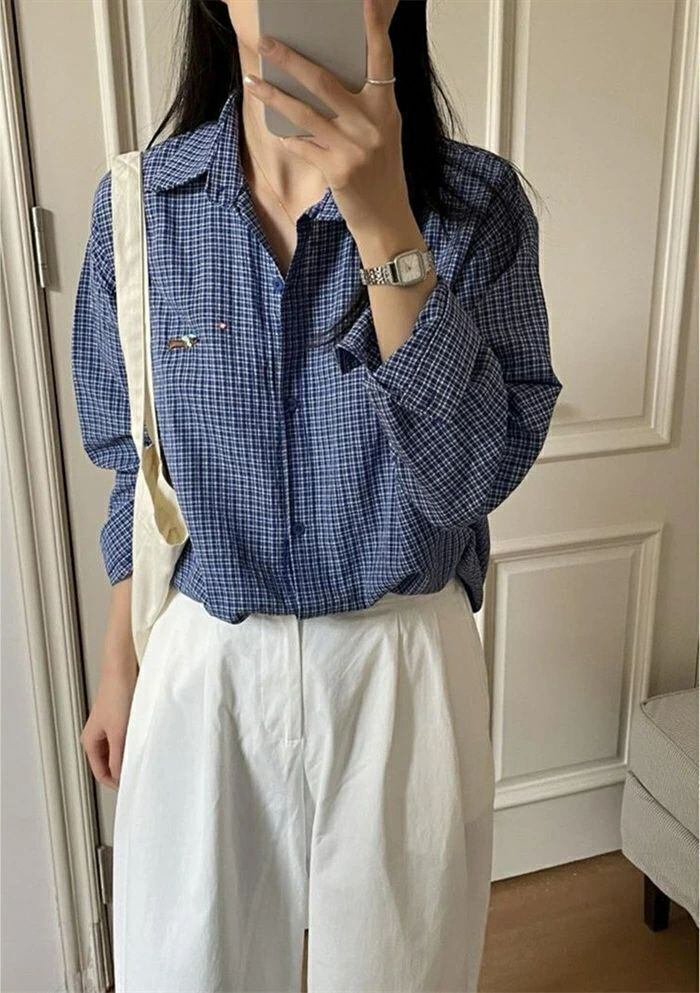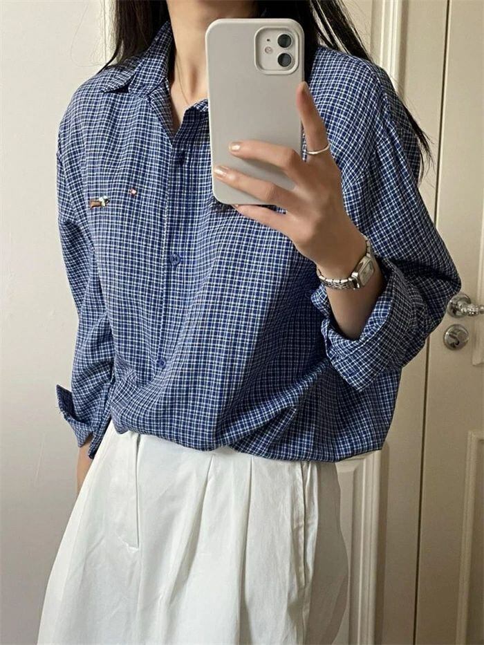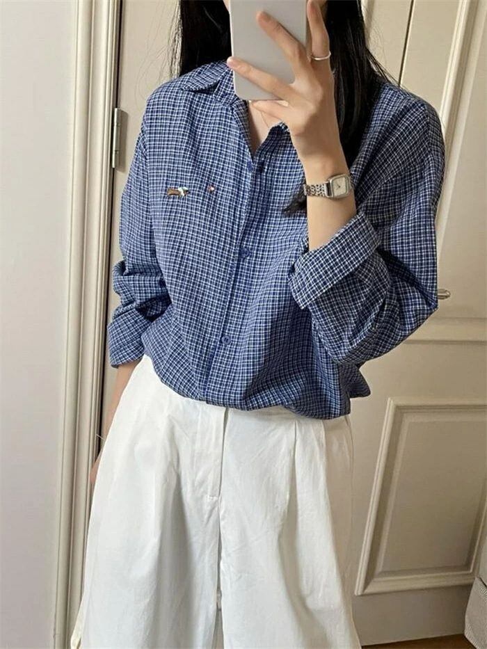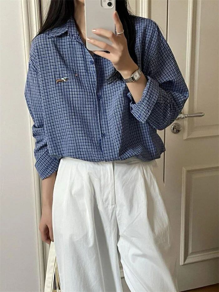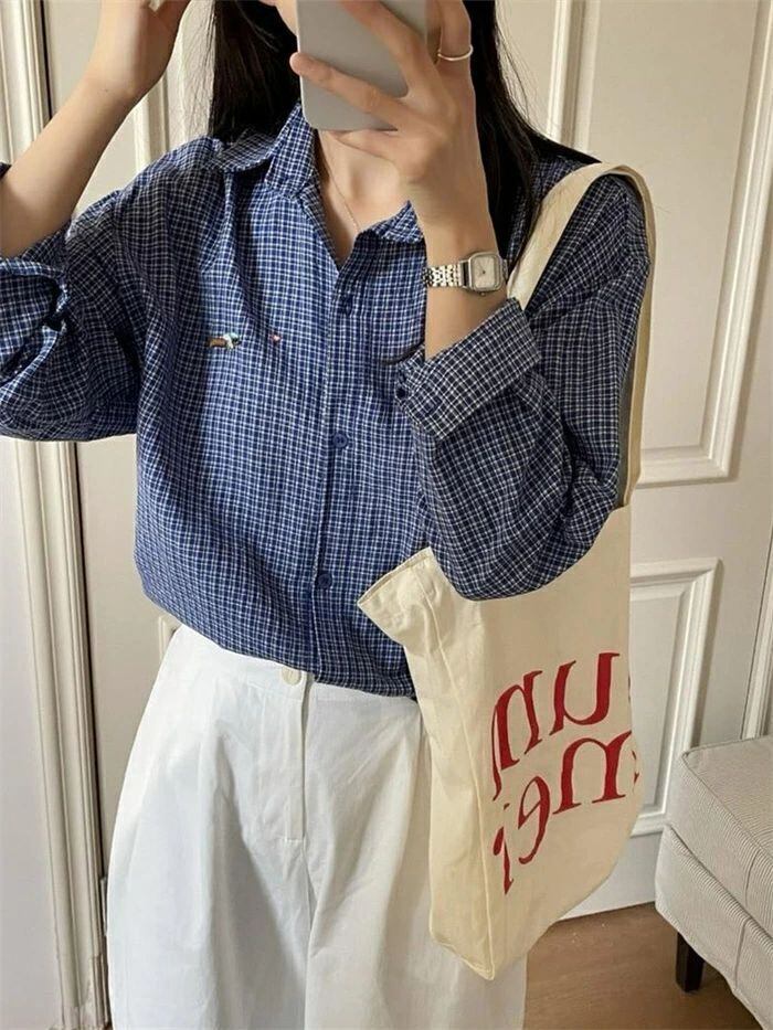 シャツ チェックシャツ レディース 春秋 綿100% ブラウス 長袖 刺繍 シャツブラウス 綿シャツ コットン チェック柄 綿 トップス 大きいサイズ 仕事 オフィス ゆったり 体型カバー おしゃれ 着?せ 可愛い 前開き カジュアル 大人 シンプル 通勤OL 通学 20代 30代 40代 50代