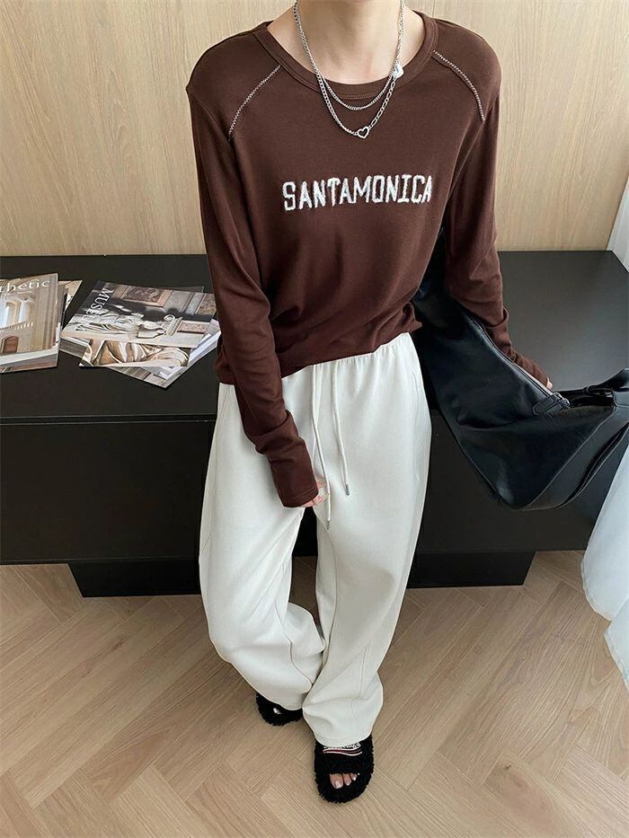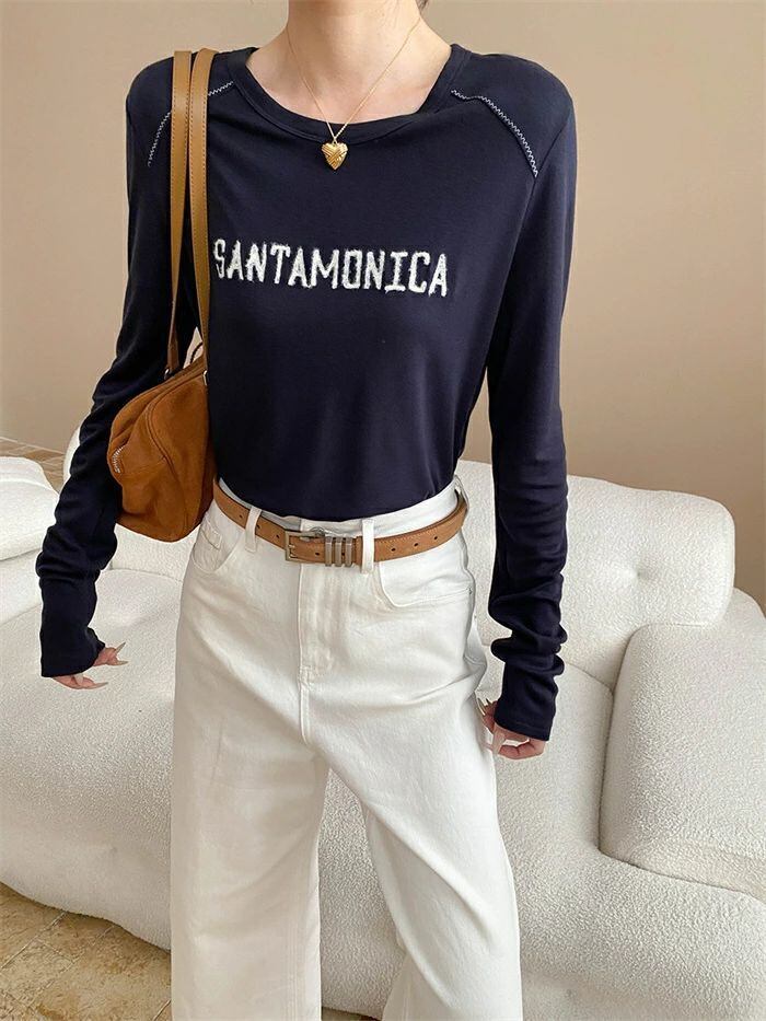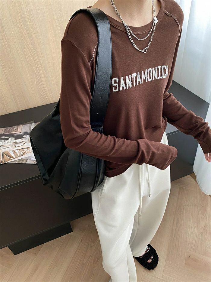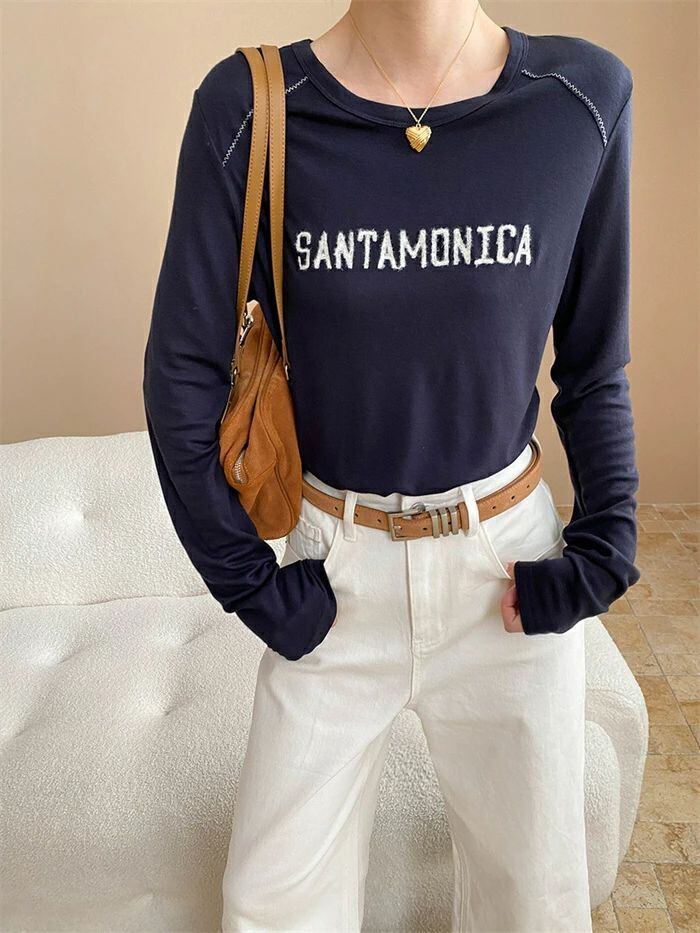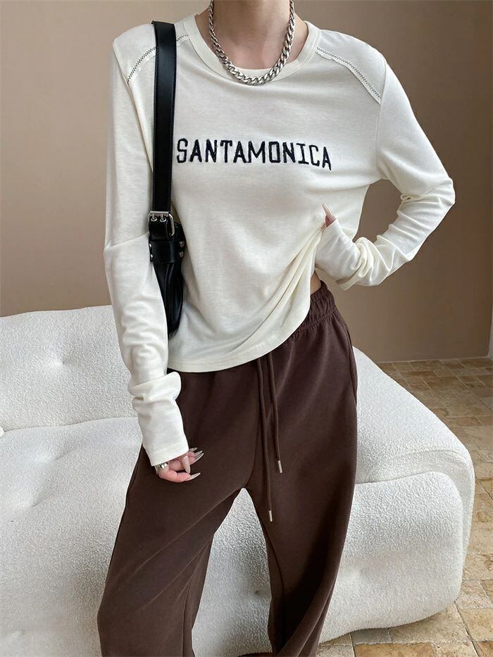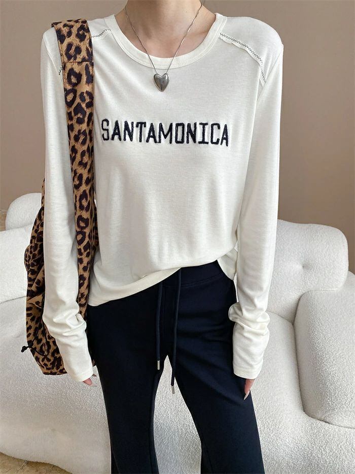 Tシャツ 刺繍 レディース インナー トップス 長袖 tシャツ クルーネック 重ね着 レイヤード おしゃれ ゆったり 体型カバー 着?せ カジュアル シンプル お洒落 柔らかい 大人 オフィス 通勤 通学 20代 30代 40代 50代