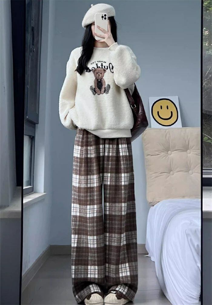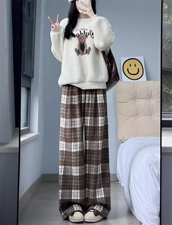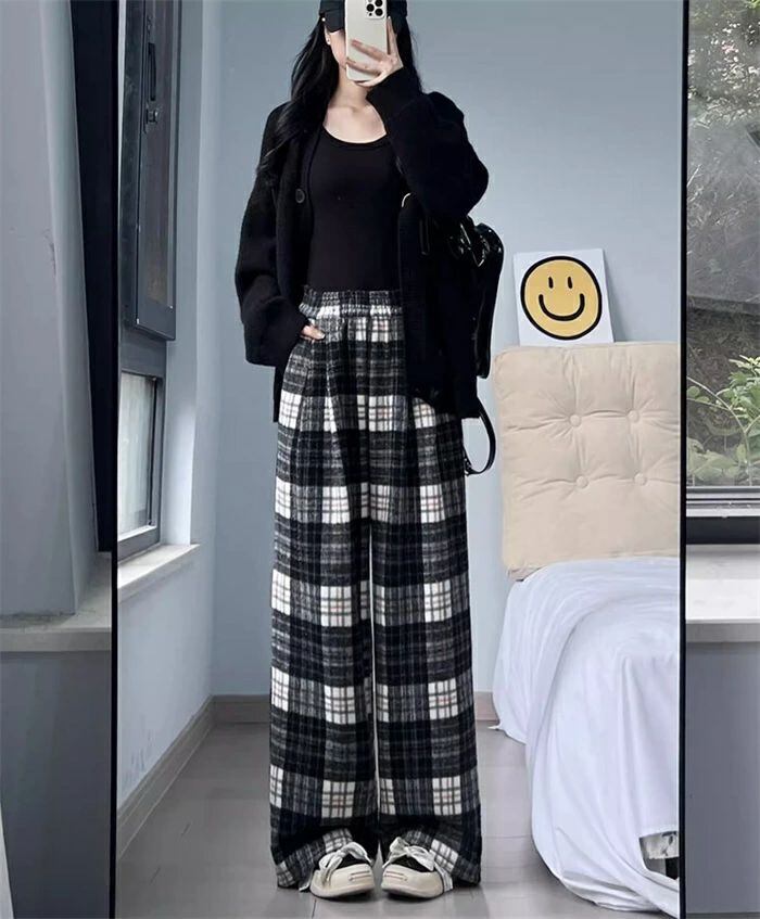 パンツ ワイドパンツ レディース チェックパンツ チェック柄 裏起毛 秋 冬 ボトムス ロングパンツ ウエストゴム ハイウエスト イージーパンツ 楽ちん ロング丈 普通丈 大きいサイズ ゆったり 体型カバー 着?せ 美脚 通勤 OL 可愛い カジュアル 暖かい お洒落 保温