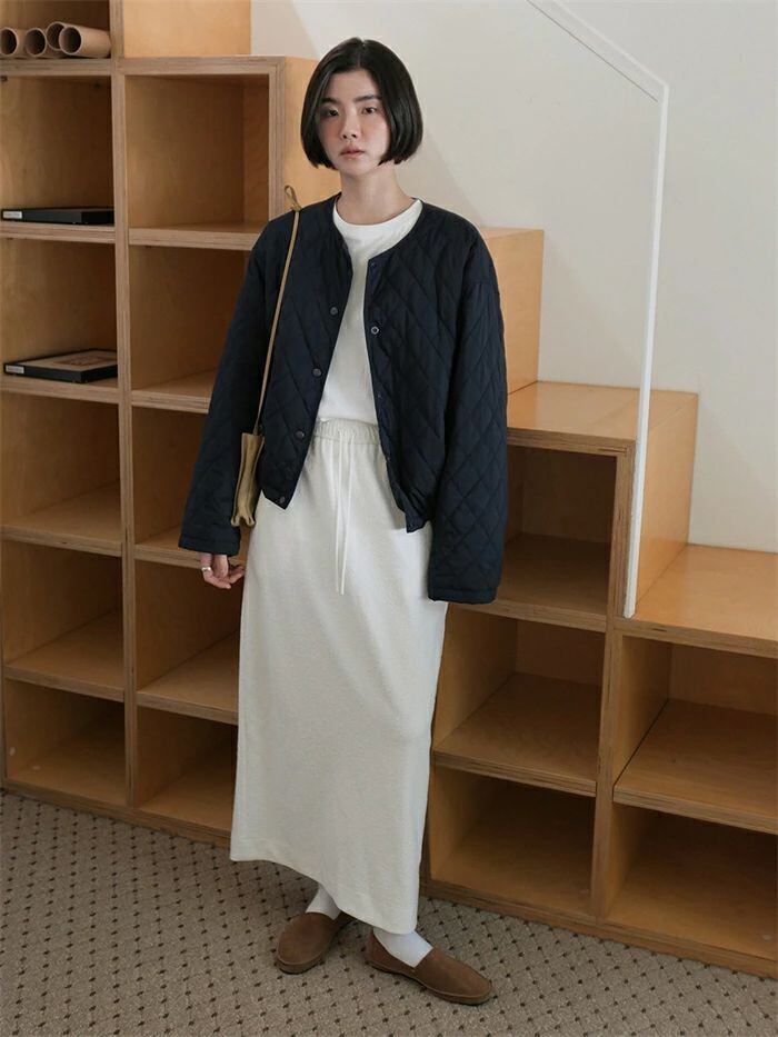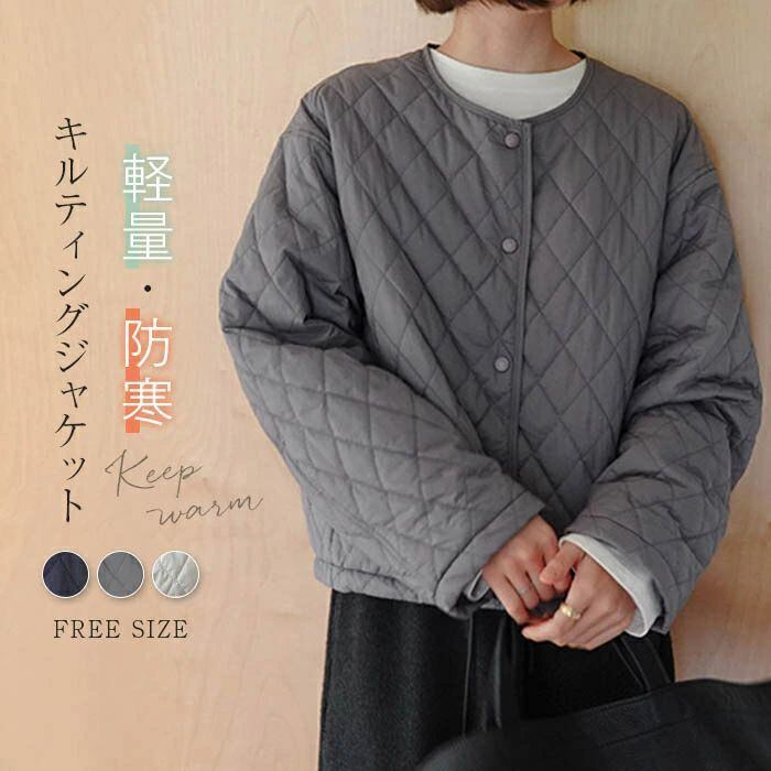 キルティング ジャケット キルティング コート レディース 春 秋 冬 コート ジャケット インナージャケット 中綿コート 中綿 中綿ジャケット アウター ノーカラー ショート丈 暖かい 防寒 暖か 軽い カジュアル 大きいサイズ 体型カバー 通勤 OL 無地 30代 40代 50代