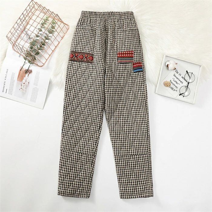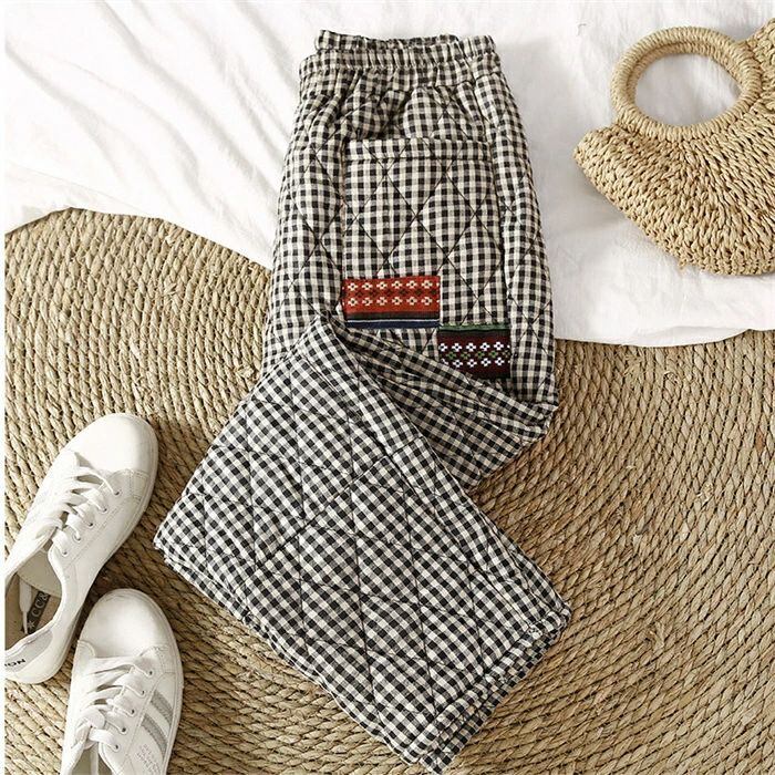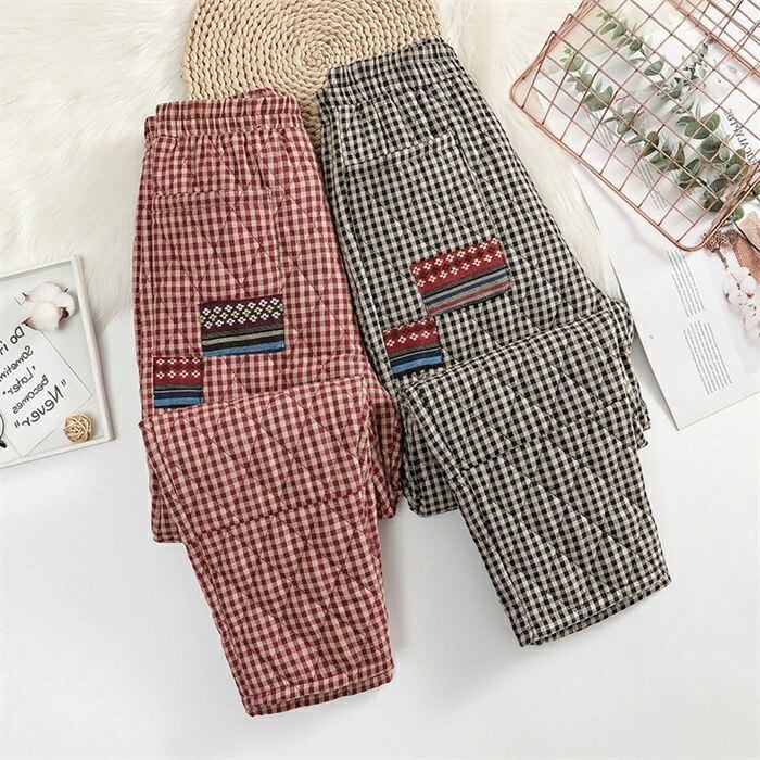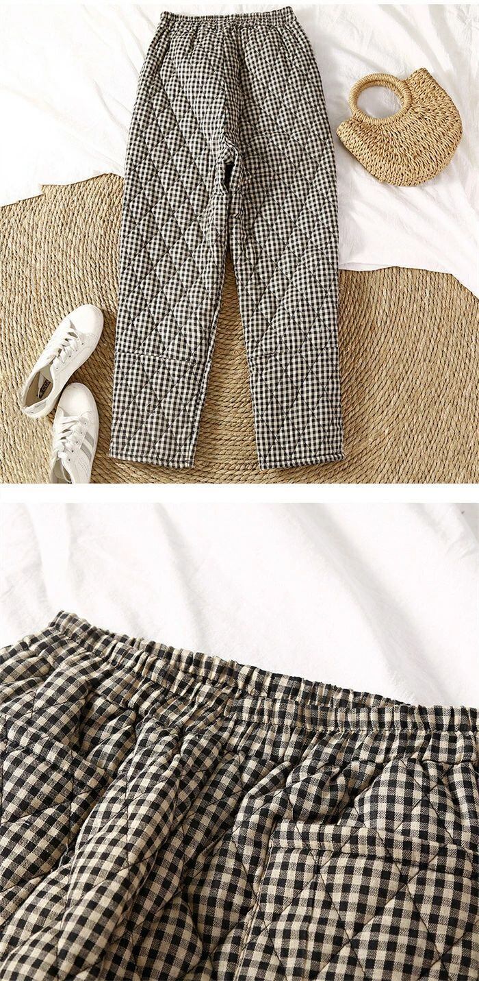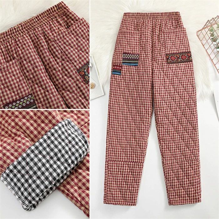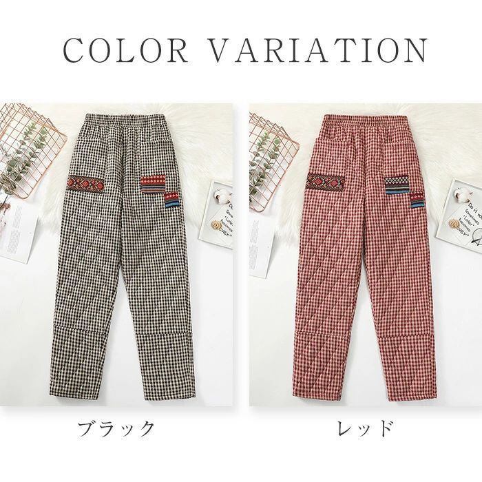キルティングパンツ レディース 秋冬 厚手 キルティング パンツ 中綿入り チェック柄 テーパードパンツ テーパード イージーパンツ ロングパンツ ボトムス ズボン 無地 ロング丈 ウエストゴム 暖かい ゆったり 大きいサイズ 体型カバー ルームウェア エスニック 30代 40代 50代 送料無料