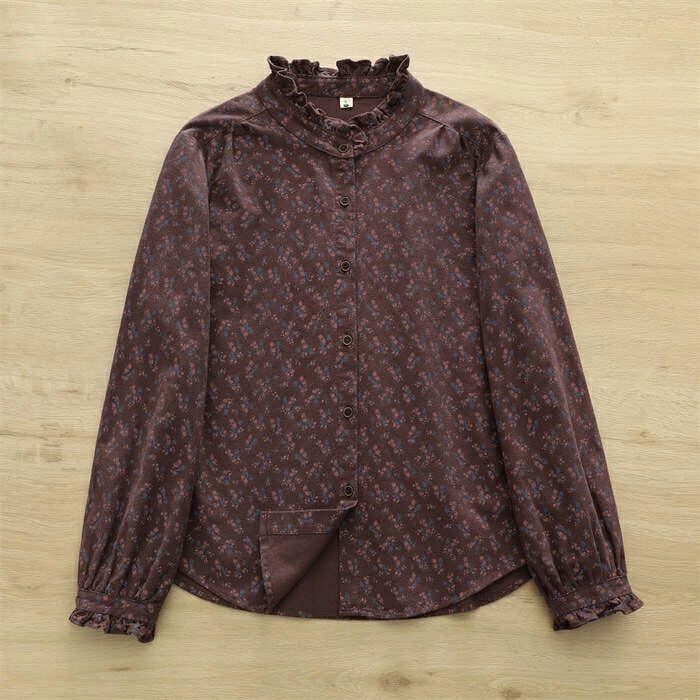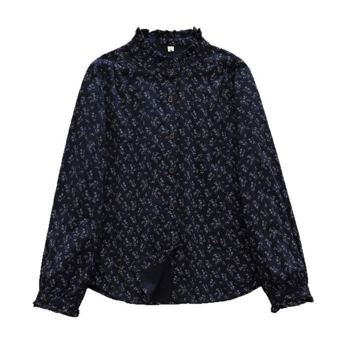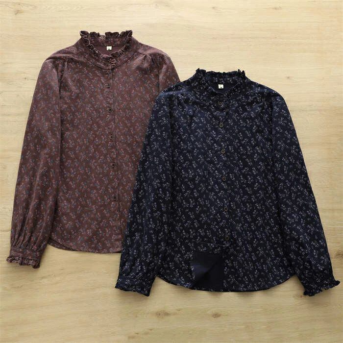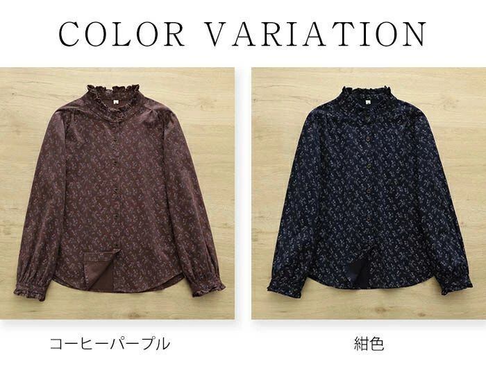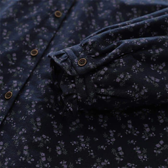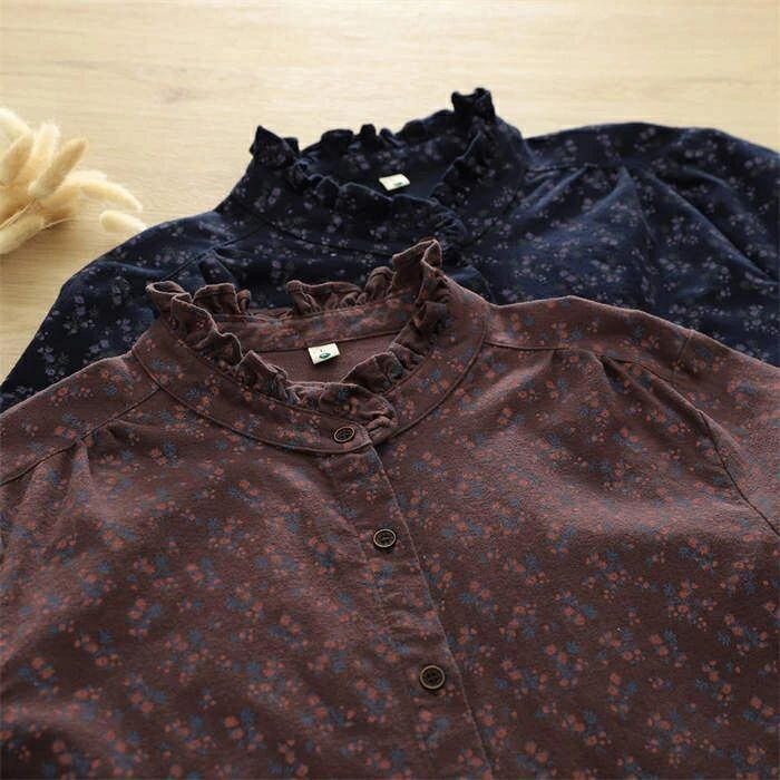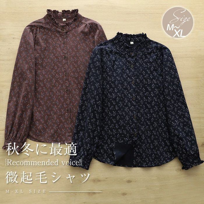 フリル襟 シャツ ブラウス 微起毛 レディース コットン100% 春 秋 長袖 秋 冬 総柄 花柄 シャツブラウス トップス カジュアル 秋 冬 オフィ