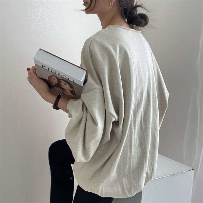 送料無料 スウェット レディース きれいめ トレーナー 秋 春 長袖 キーネック Tシャツ カットソー 長袖 大きめ ゆったりトップス 体型カバー シンプル カジュアル 大きいサイズ ゆるっと ビッグシルエット 幅広カフス 着?せ 無地 プルオーバー 可愛い カジュアル 体型カバー 着回し30代 40代 50代 20代