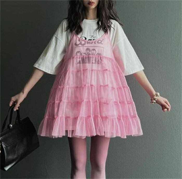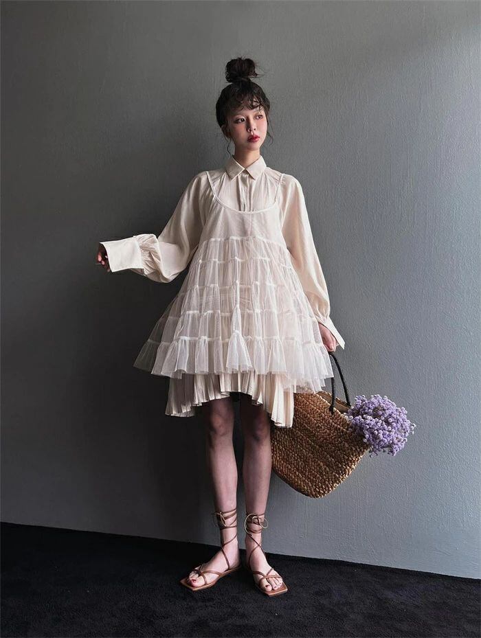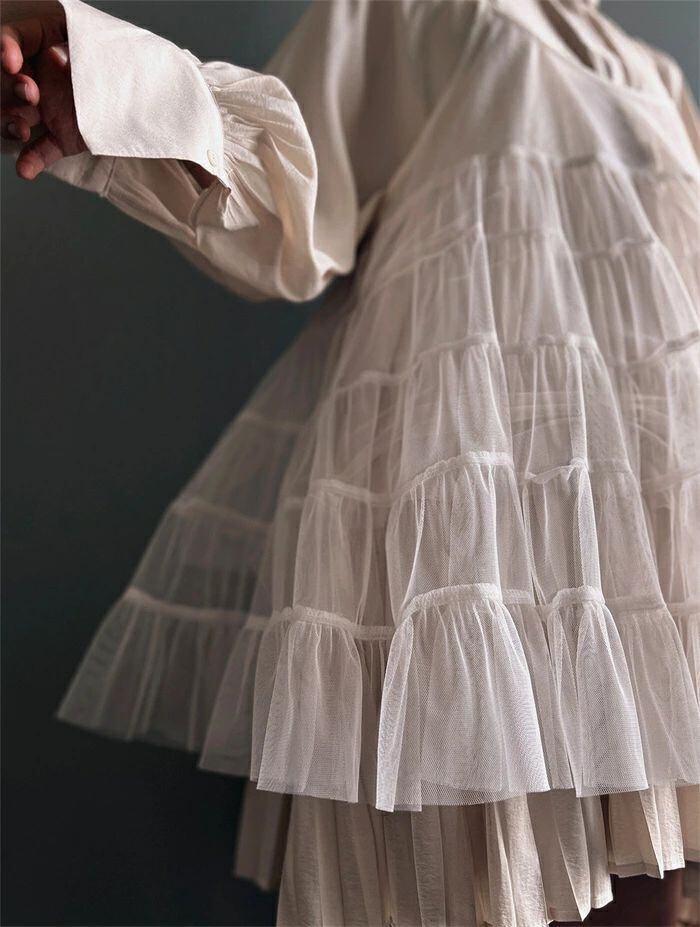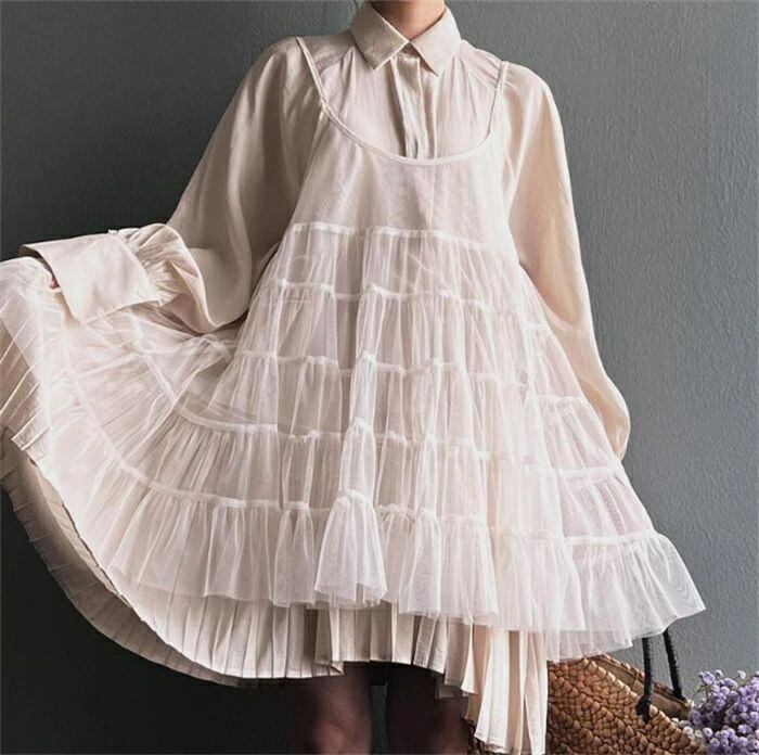 シャツワンピースゆったりワンピースドッキングワンピースチュールワンピース