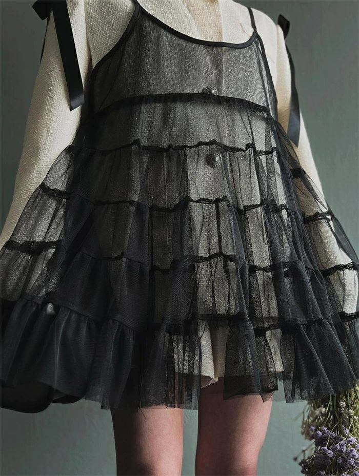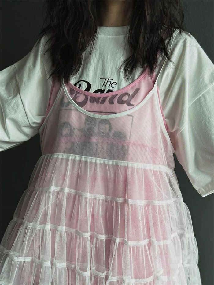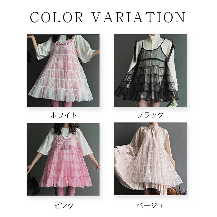 キャミワンピース レディース ワンピース チュール キャミワンピ 重ね着 レイヤード 可愛い ワンピ ドレス ロング 透け感 透け ノースリー