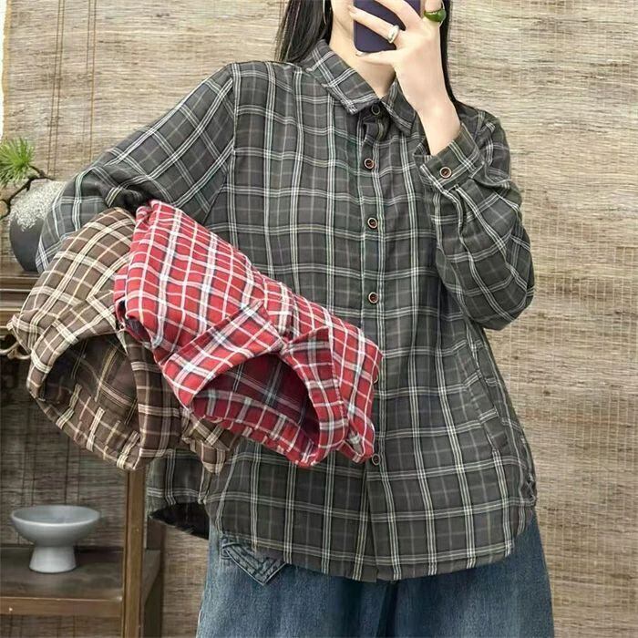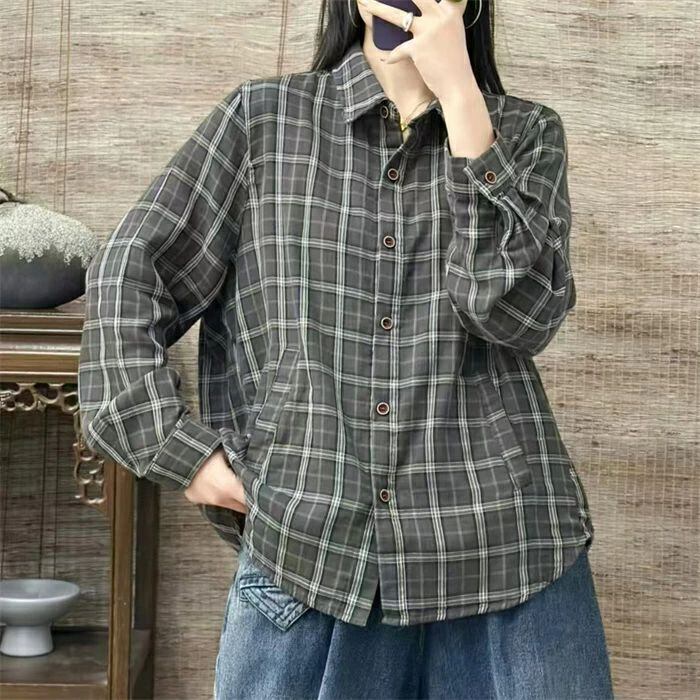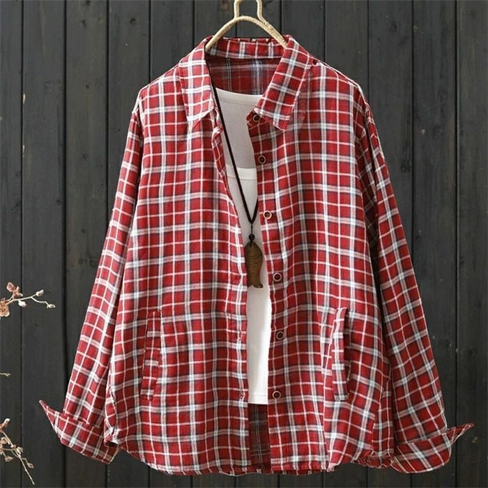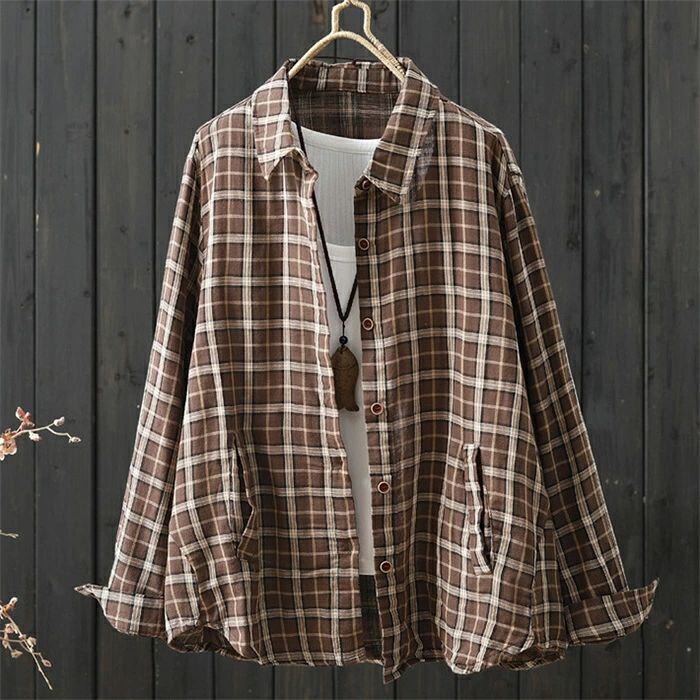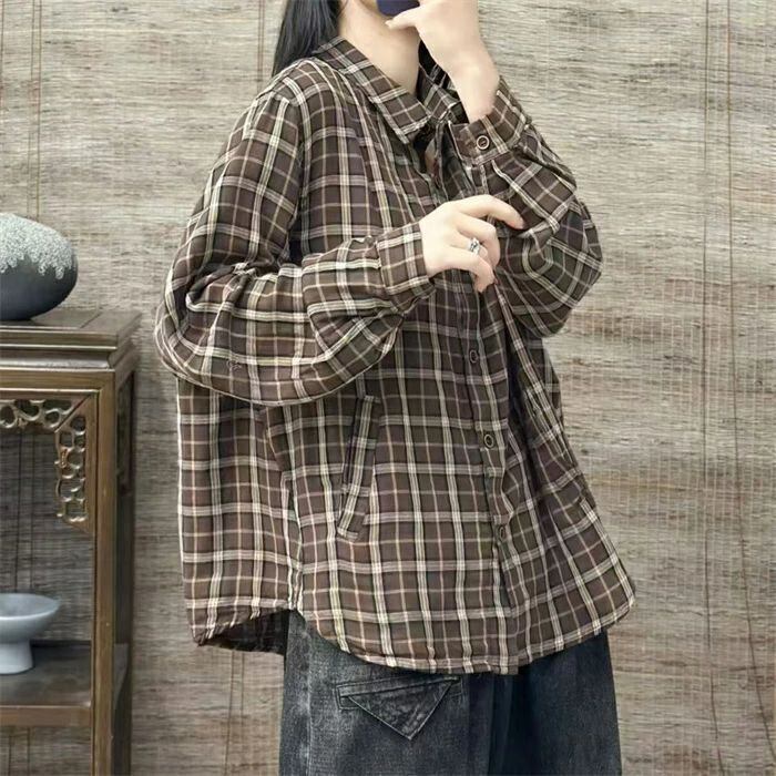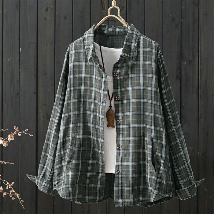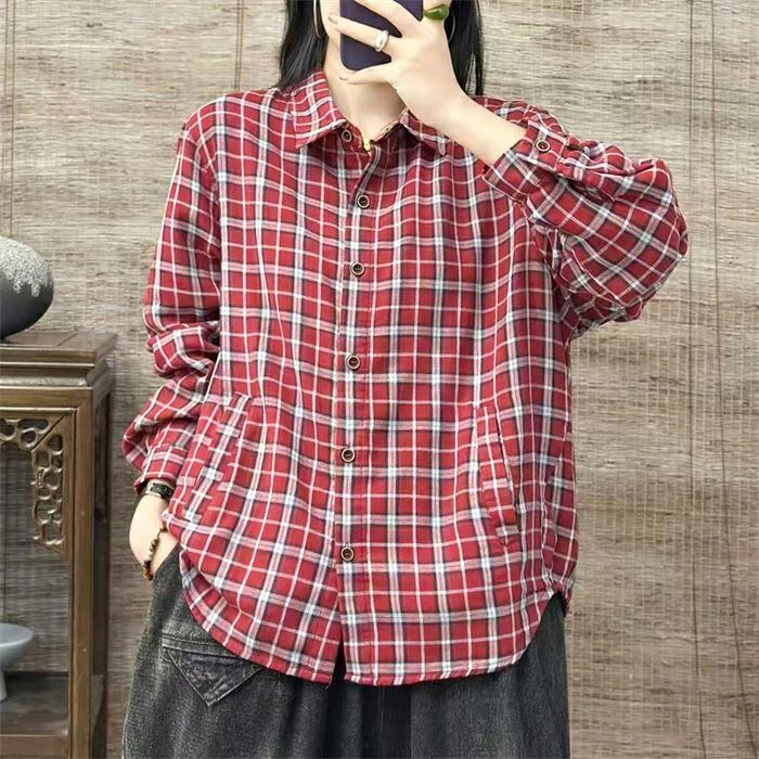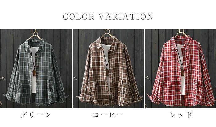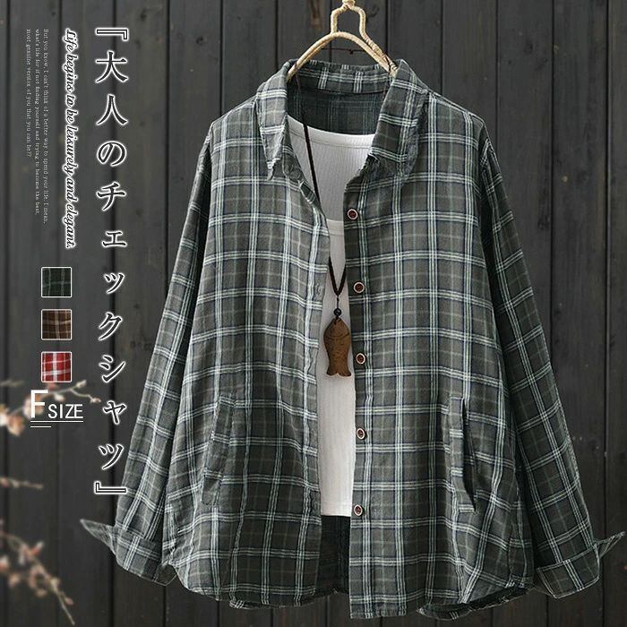 チェックシャツ シャツ レディース 春秋 シャツブラウス ブラウス チェック柄 長袖 綿シャツ カーディガン コットン トップス 前開き オフィス 折襟 羽織り ゆったり カジュアル ナチュラル 通勤OL シンプル 大人 春 秋 20代 30代 40代 50代