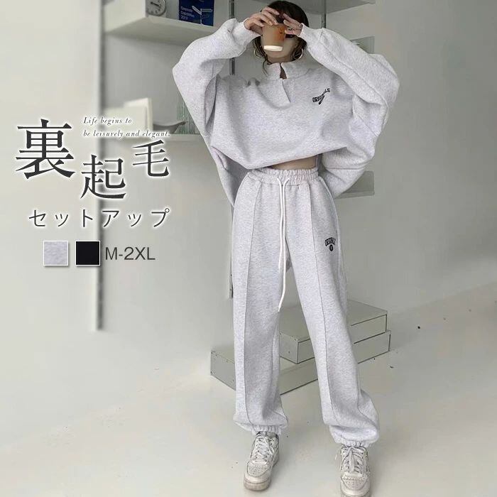 2点セット 裏起毛 スウェット レディース 秋冬 セットアップ パンツスーツ スポーツウェア ジョガーパンツ トレーナー パーカー プルオーバ
