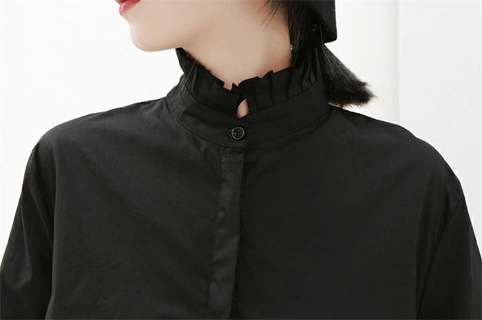 シャツブラウス レディース 春 秋 長袖 きれいめ ロングシャツ 上品 不規則 チュニック ドレス アシンメトリー 立ち襟 フリル襟 大きいサイ