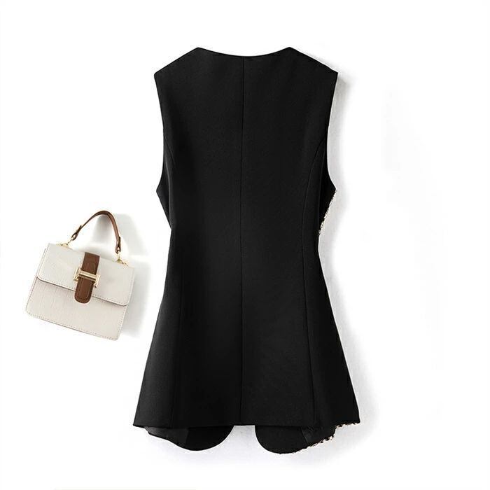 ジレ ベスト レディース フォーマル 春 秋 冬 ノースリーブ Vネック ロング ベスト きれいめ スーツ ベスト ジレベスト バイカラー アウタ