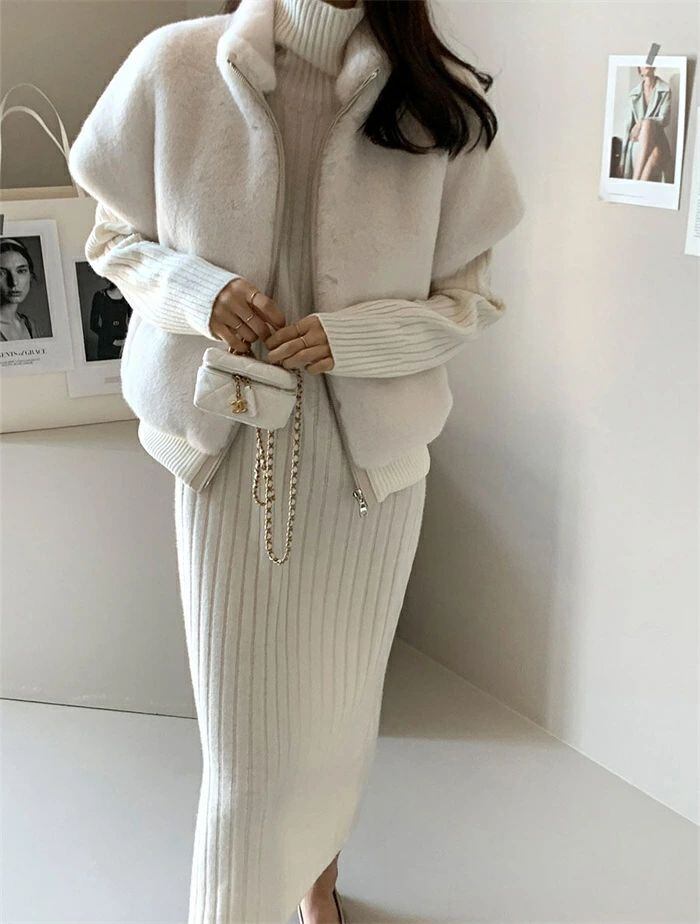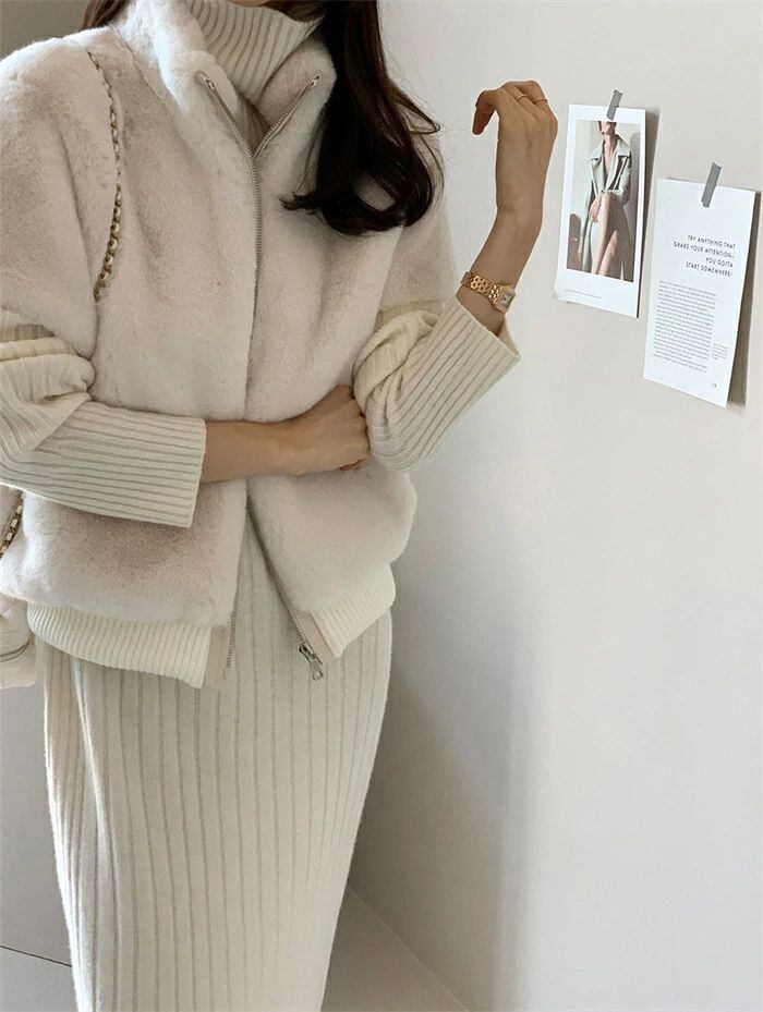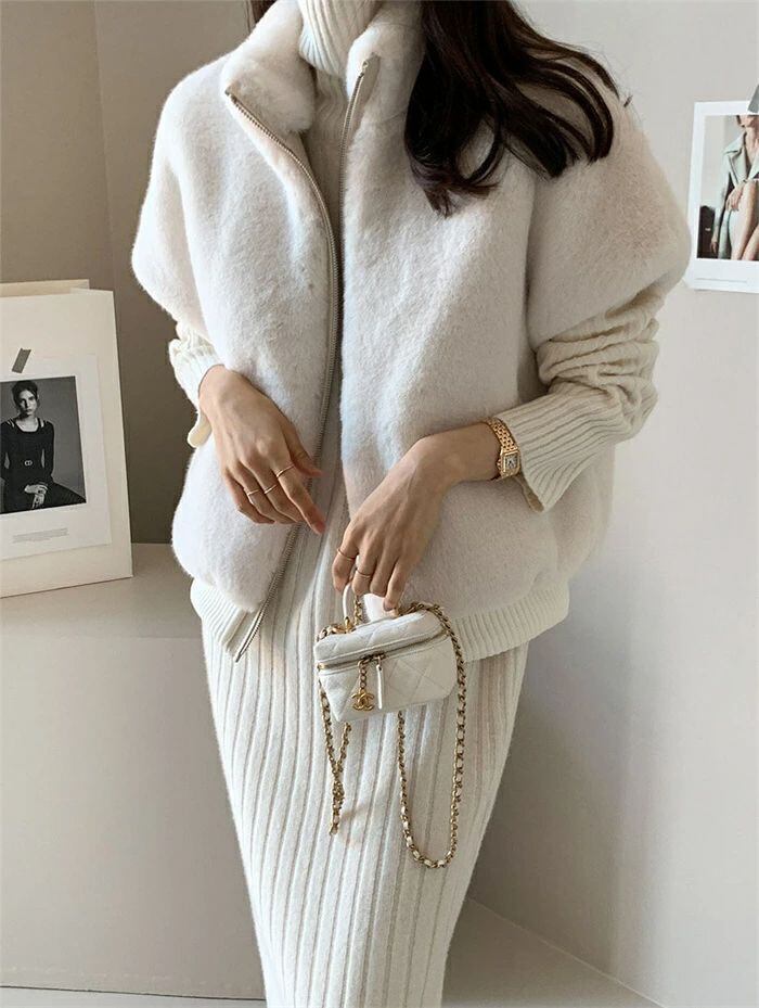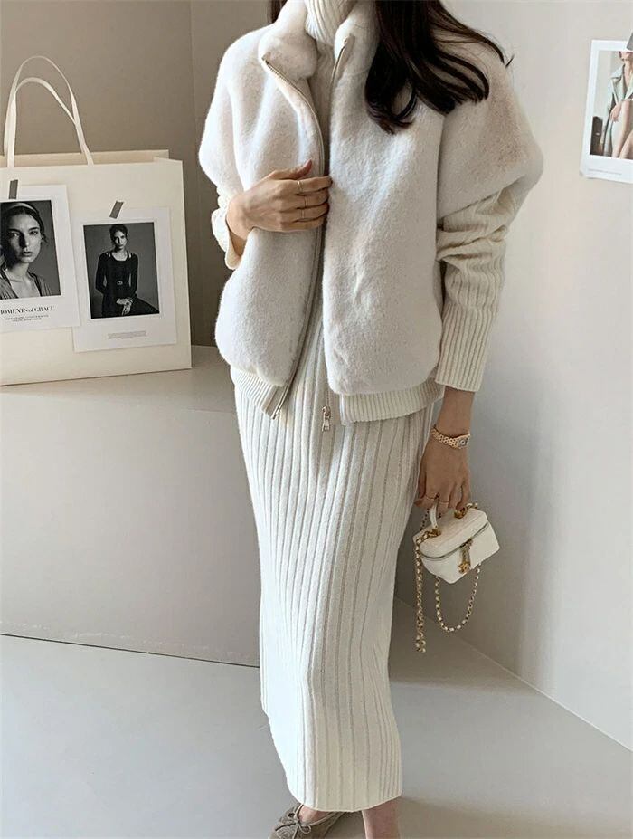 スカートニットカーディガンケーブルカーディガンリブカーディガンスーツセ