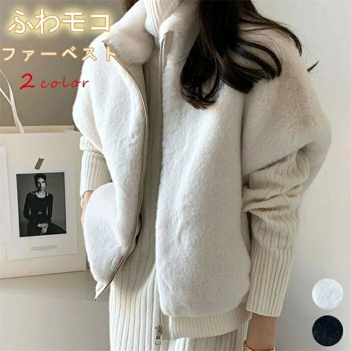 ファー ベスト ボア ベスト レディース エコファー ベスト 立ち襟 秋 冬 ファー ジレ フェイクファー ふわふわ もこもこ ふわもこ ベスト