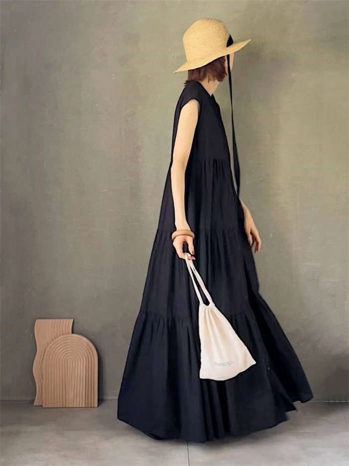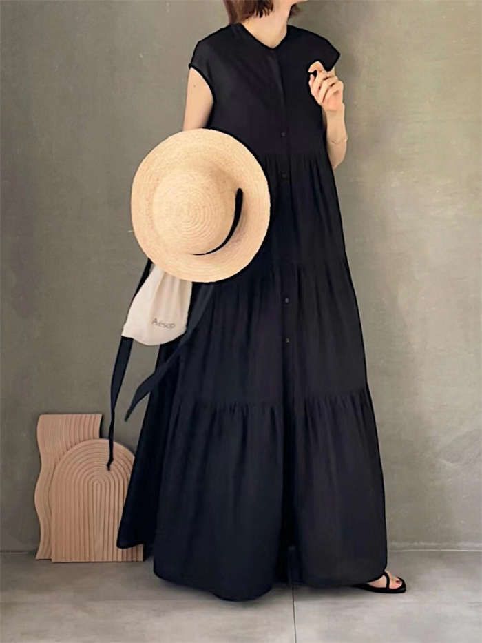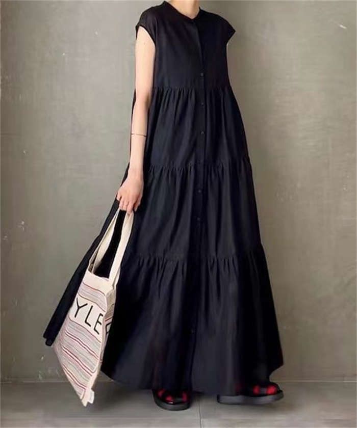 ワンピース ティアードワンピース ノースリーブ シャツワンピース ロング丈 夏 レディース ふんわり 無袖 ティアード ガーリー アンティーク ヴィンテージ カジュアル ロング丈 ロングワンピース リゾート ゆったり 大きいサイズ 秋 春 体型カバー シンプル 送料無料