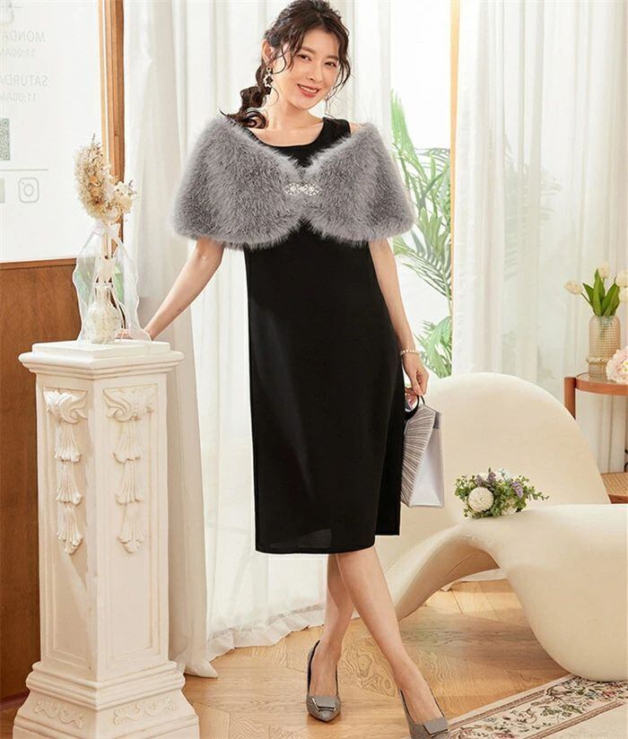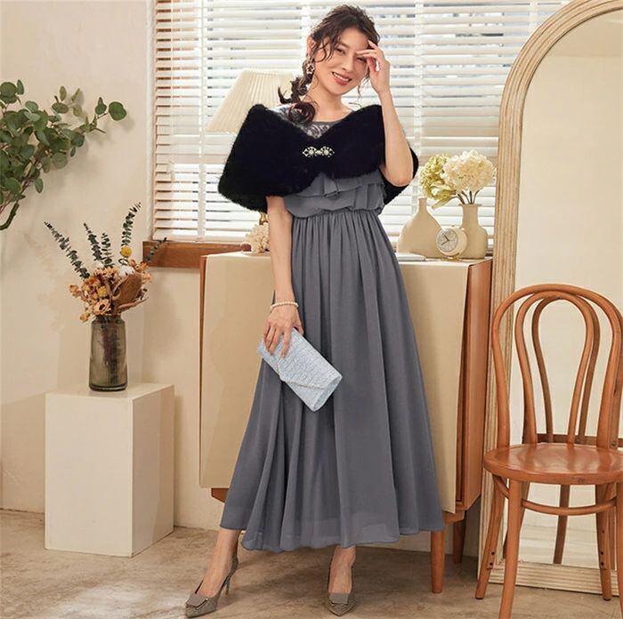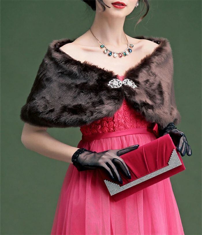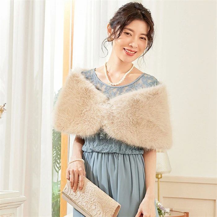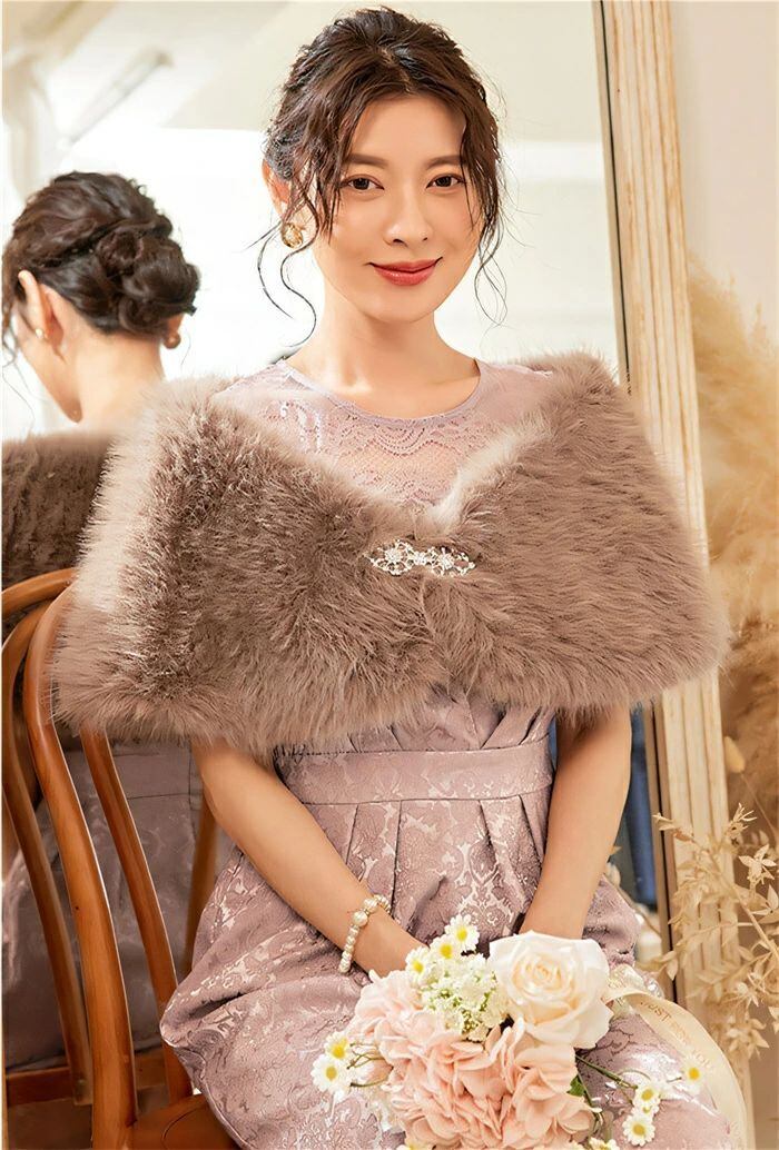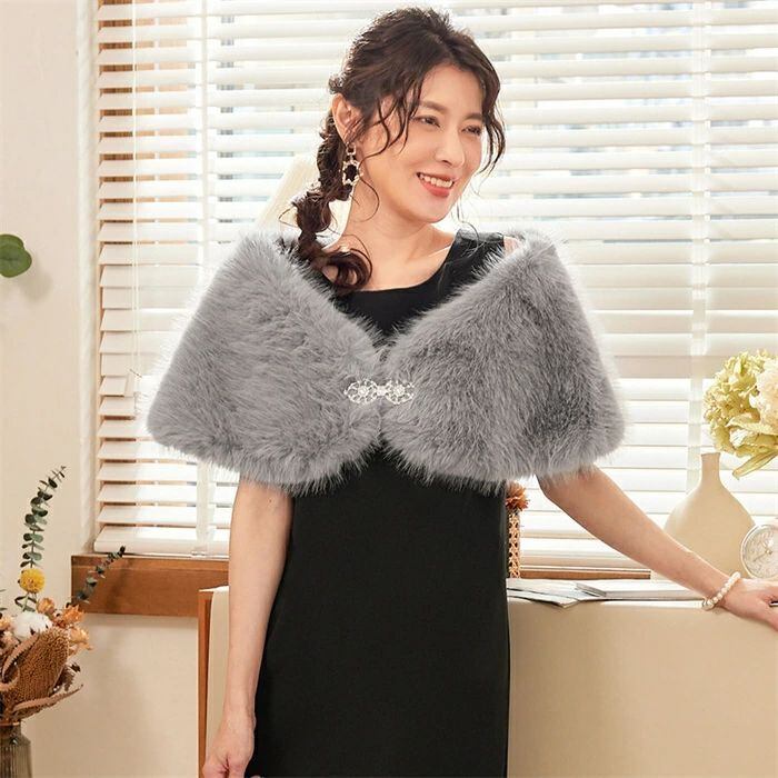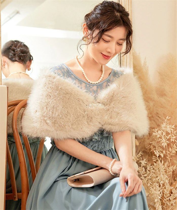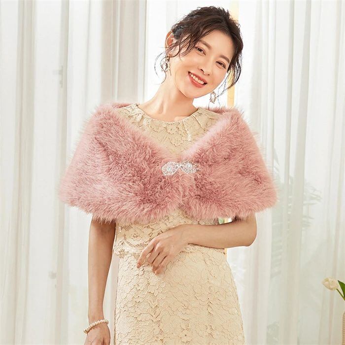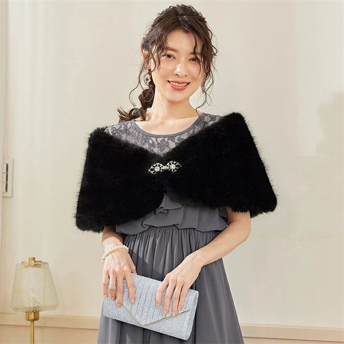 ファーボレロ ボレロ ショール レディース ふわふわ 秋 冬 ストール ブローチ付き フェイクファー 羽織 パーティードレス カーディガン マ