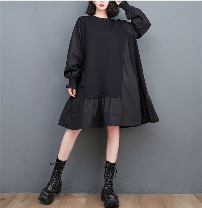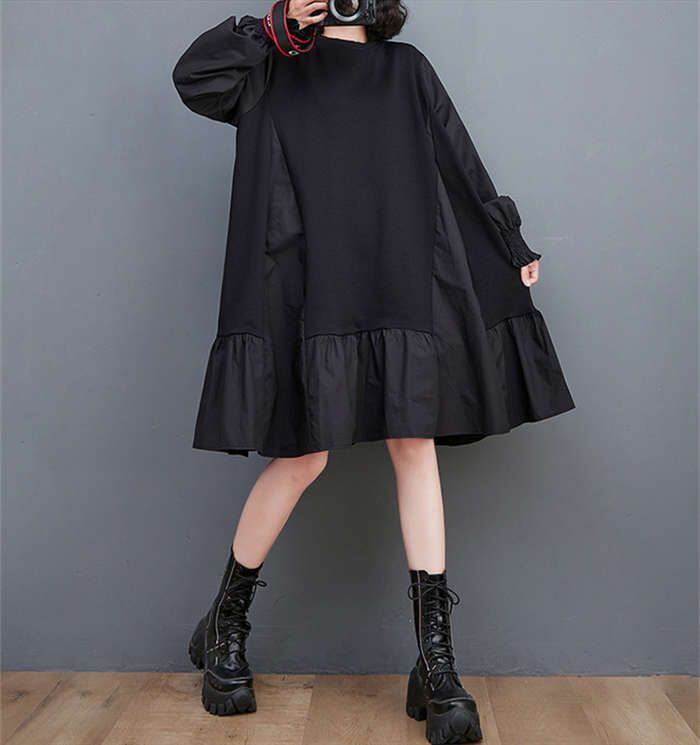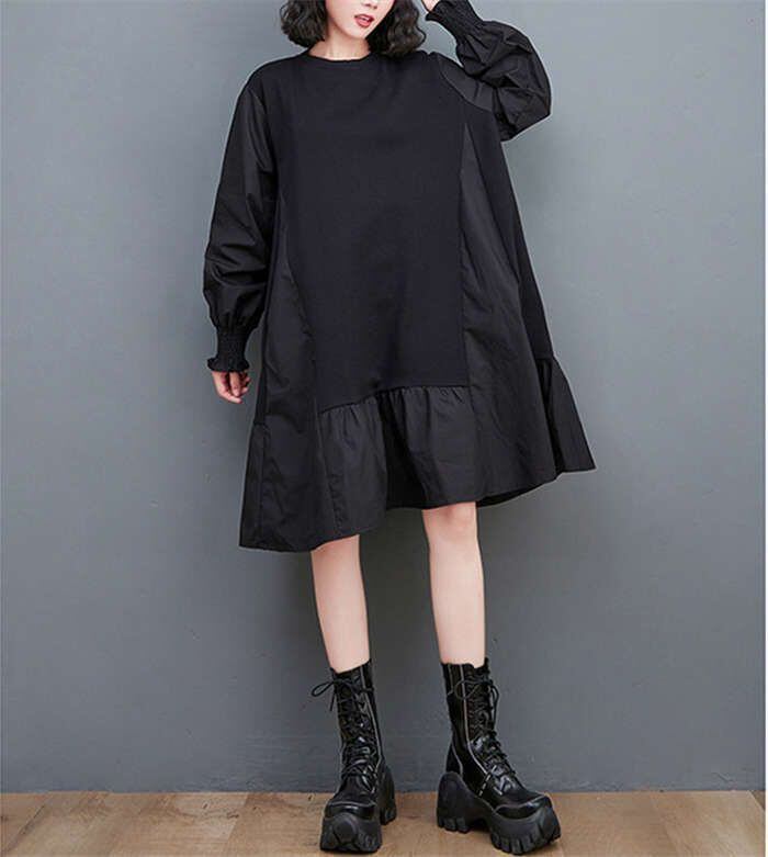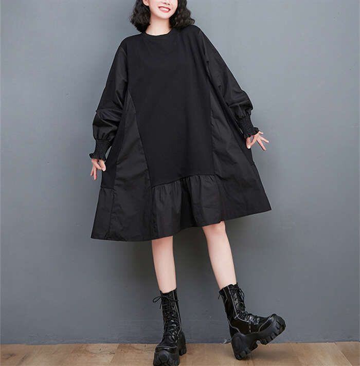 ワンピース 長袖 チュニックワンピ バルーンスリープ 春秋 レディース きれいめ ぽわん袖 ゆったり 異素材 着やせ ロングワンピース ミモレ丈 ミモレワンピース 体型カバー ビッグシルエット パッチワーク カジュアル 大きいサイズ 送料無料 大きいサイズ 可愛い 体型カバー 秋 ワンピース ゆったり 大きいサイズ 着痩せ チュニックワンピース 30代 40代 50代 60代 お洒落 おしゃれ オシャレ ゆるっと ママワンピース ママコーデ 秋物 ワンピース おしゃれ かわいい 30代 40代 50代