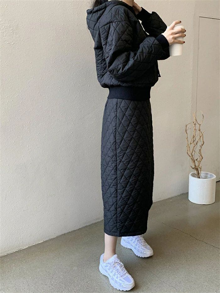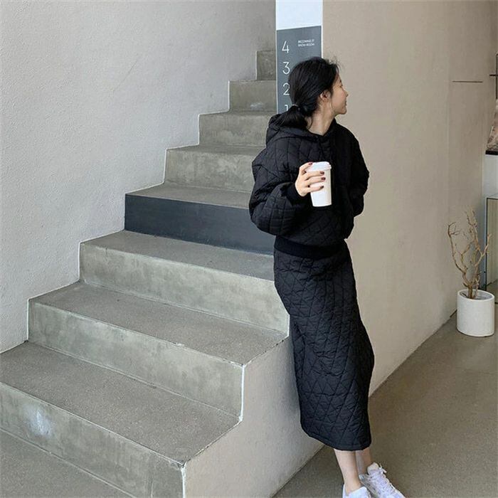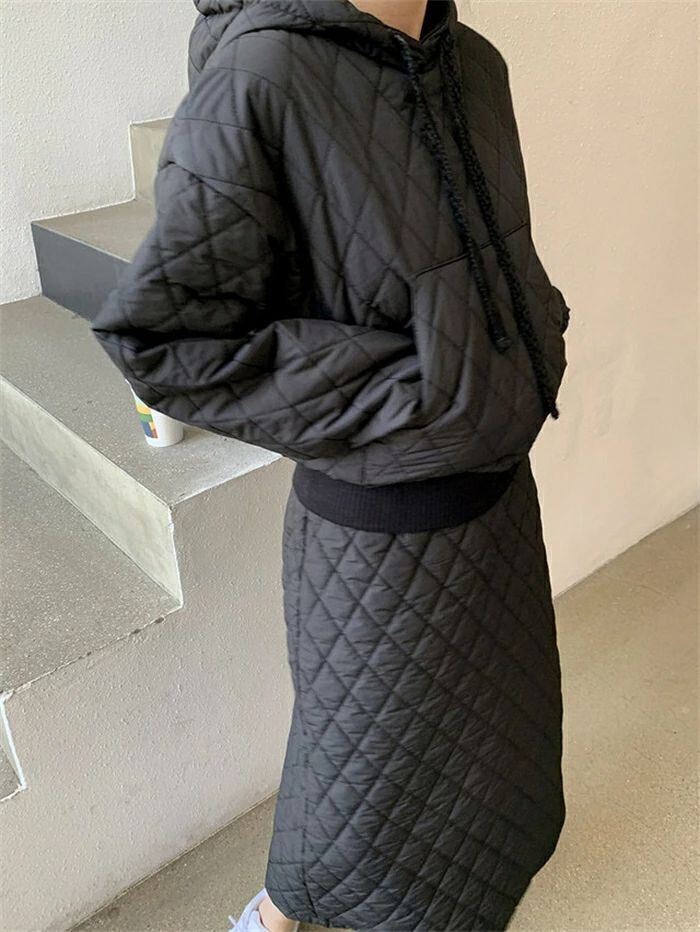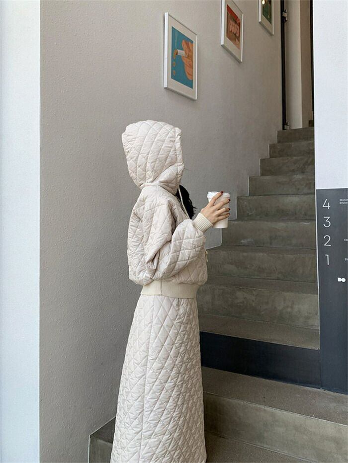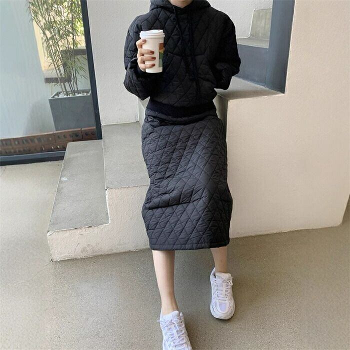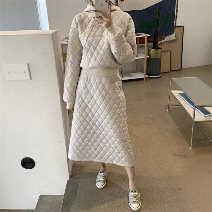 セットアップ スカート キルティング パーカー レディース 秋冬 中綿 2点セット フード付き きれいめ カジュアル 上下セット スカートスー