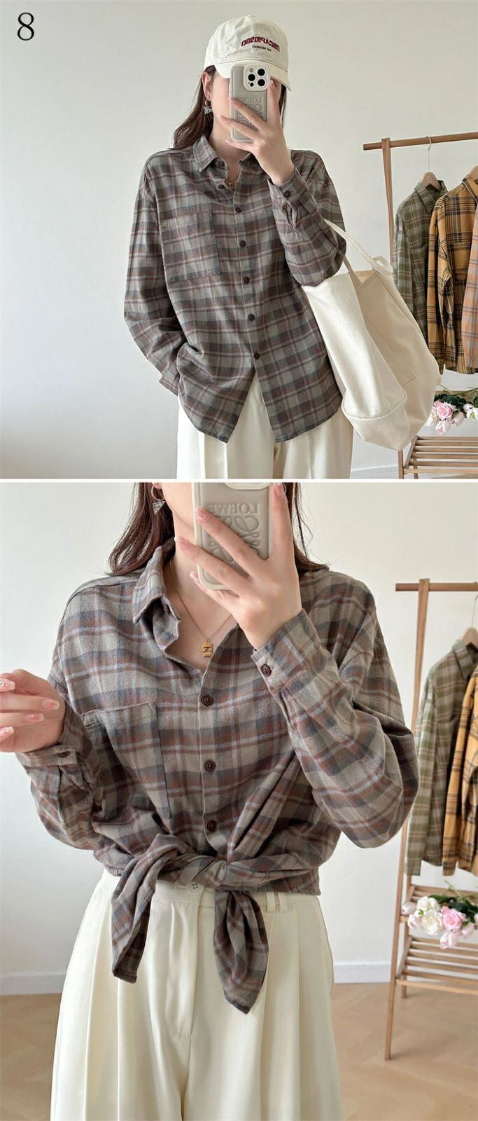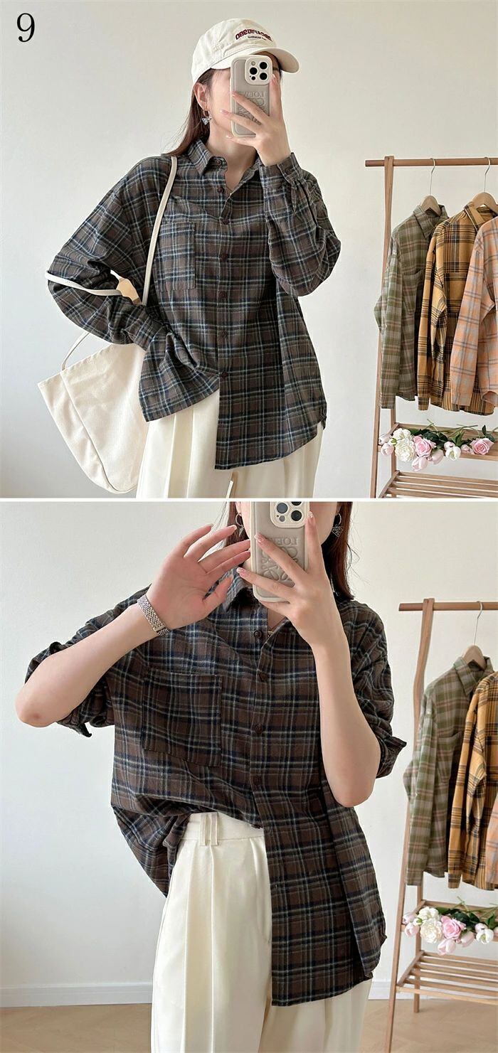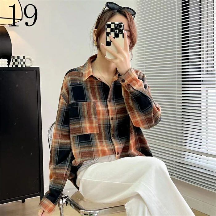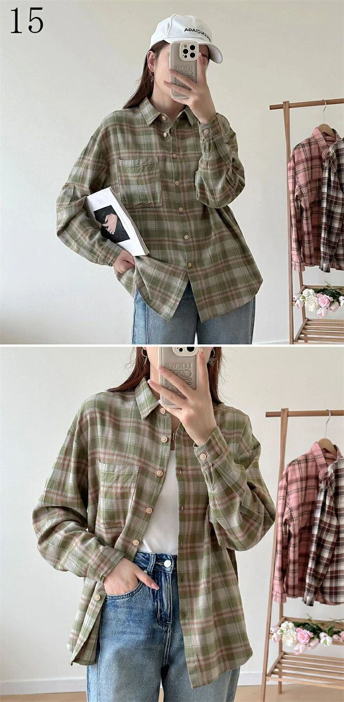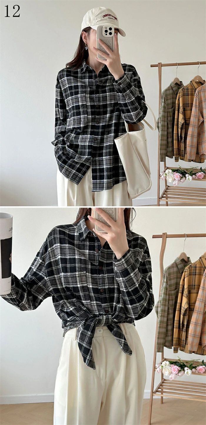 チェックシャツ シャツ 綿100% レディース 秋 シャツブラウス ブラウス チェック柄 アウター 長袖 綿シャツ コットン 仕事 羽織り 前開き トップス 重ね着 オフィス ゆったり 体型カバー 着回し カジュアル シンプル 柔らかい ナチュラル 通勤OL 通学 秋服 春