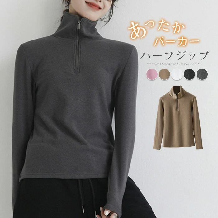 パーカー ハーフジップ レディース 秋冬 スウェット 厚手 トレーナー プルオーバー プルオーバーパーカー ジップアップ ハイネック トップ