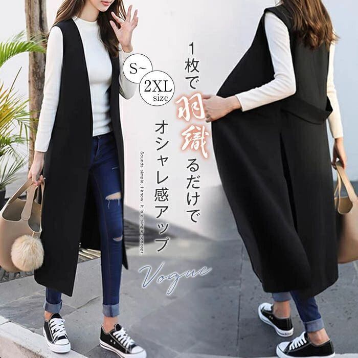 ジレ レディース ジレ カジュアルコート ロングジレ ロングベスト フォーマル トレンチベスト ロング丈スーツベスト ノーカラー アウター