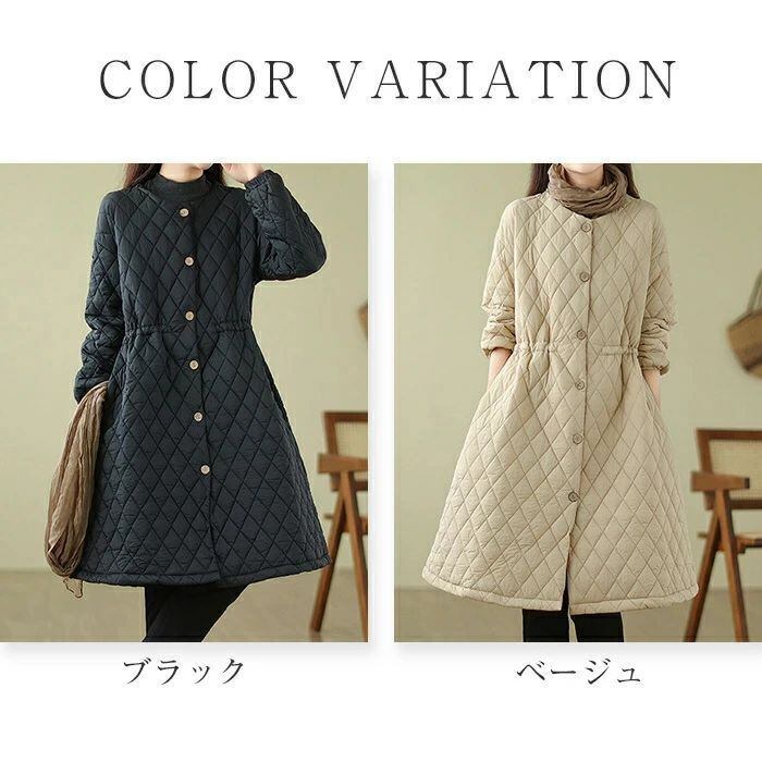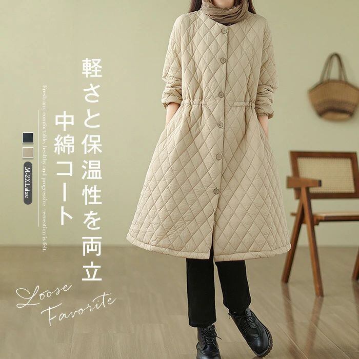 中綿 コート キルティング コート レディース ロング コート アウター ロング丈 ノーカラー 中綿 コート キルティング 防寒 ジャケット 防