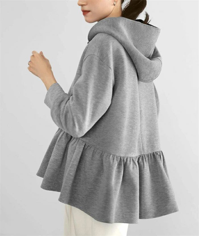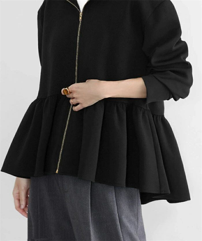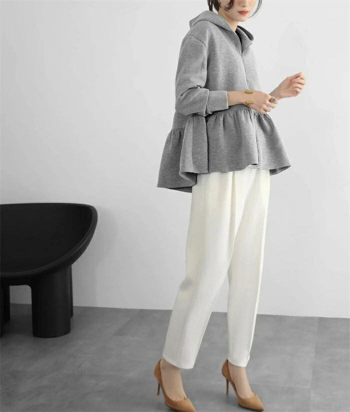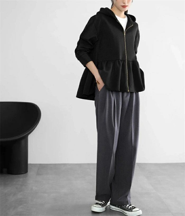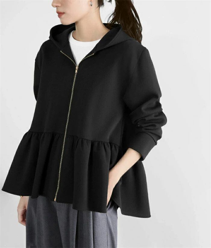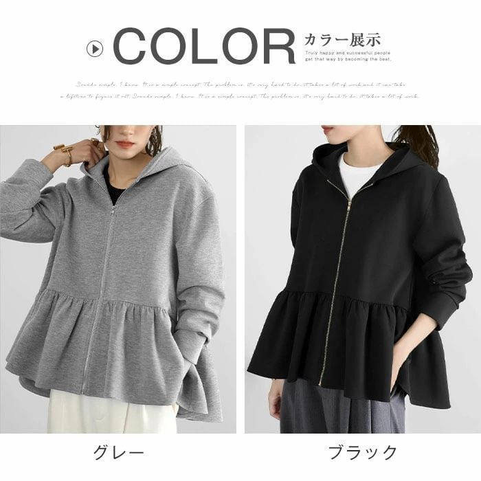 パーカー アウター フリル レディース カーディガン スウェット カーデ トレーナー 長袖 トップス 前開き 無地 羽織り ジップアップパーカ