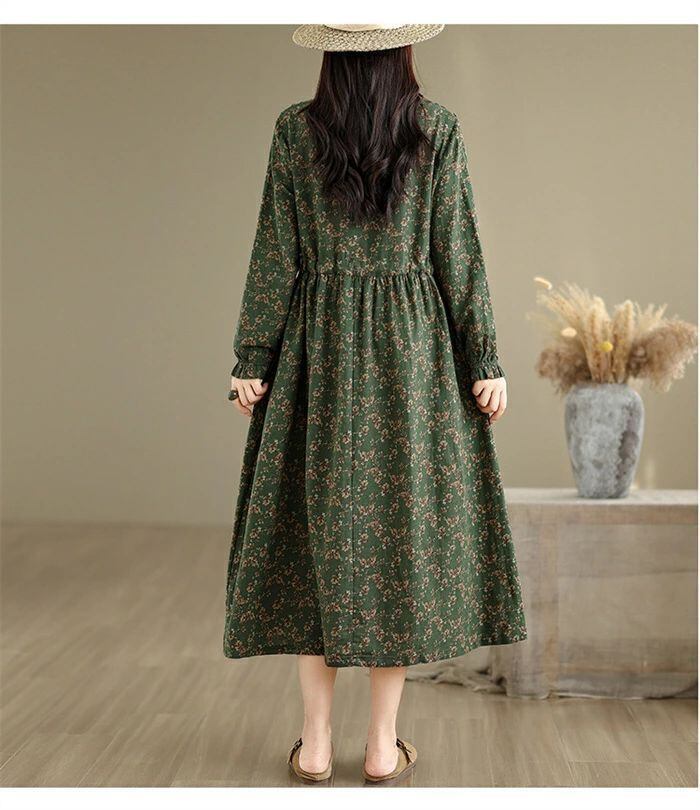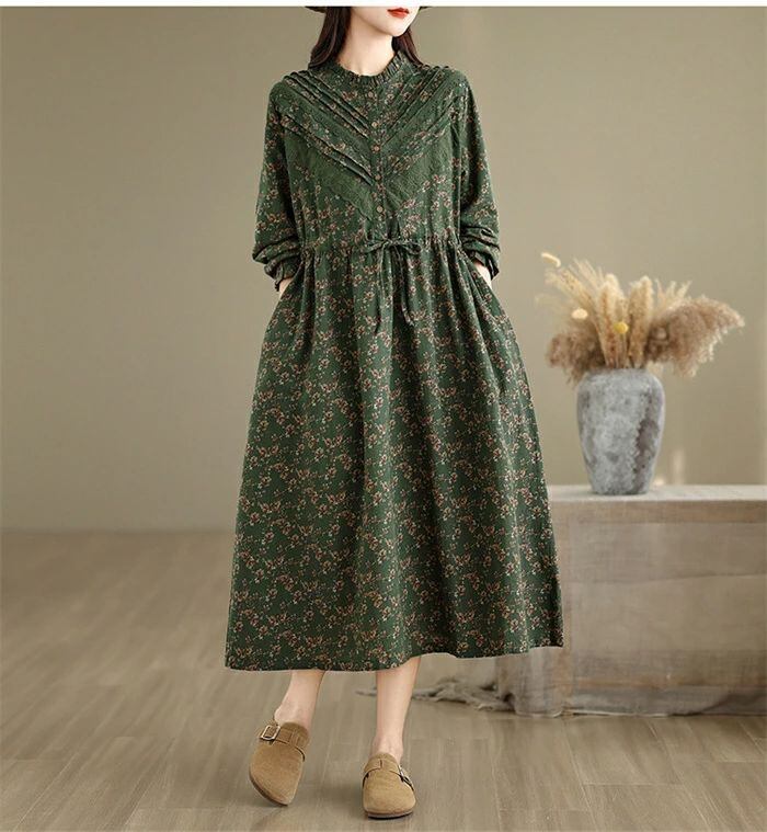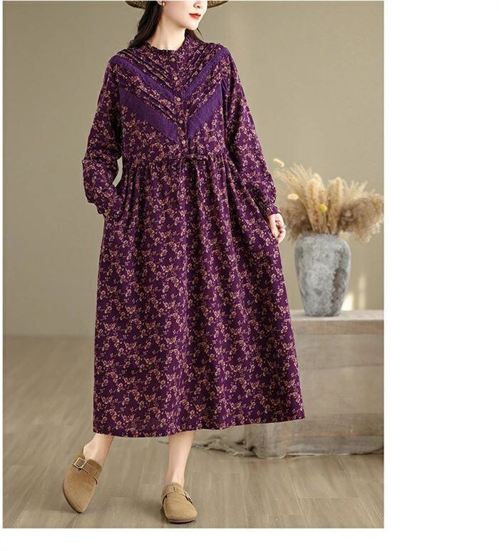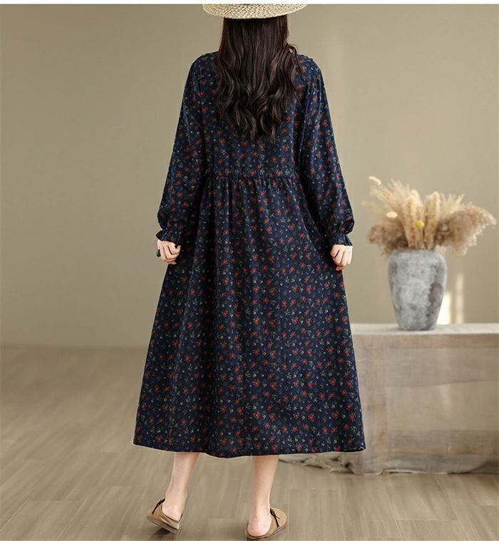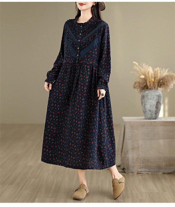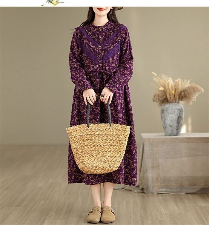 ワンピース シャツワンピース レディース 綿麻調 ロング ワンピース 長袖 コットンリネン シャツワンピ カジュアル 花柄 フリル襟 長袖 ロングワンピース フレアワンピース aライン 大きサイズ ゆったり かわいい シンプル リラックス カジュアル 春 秋 冬 森ガール 上品 通勤 OL お洒落 森ガール 30代 40代 50代 送料無料