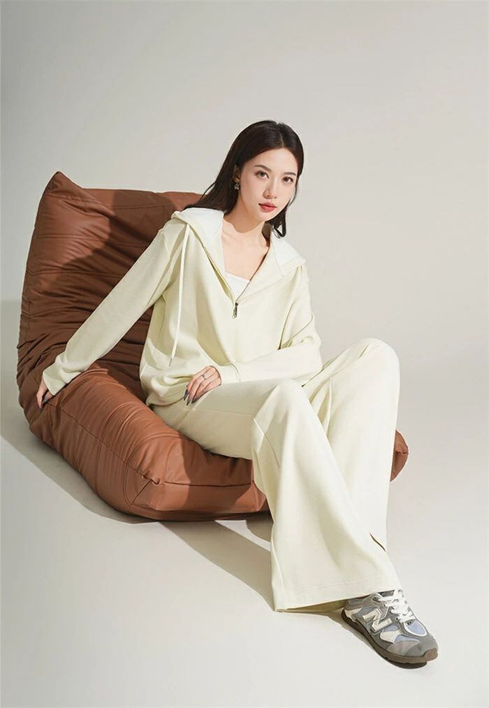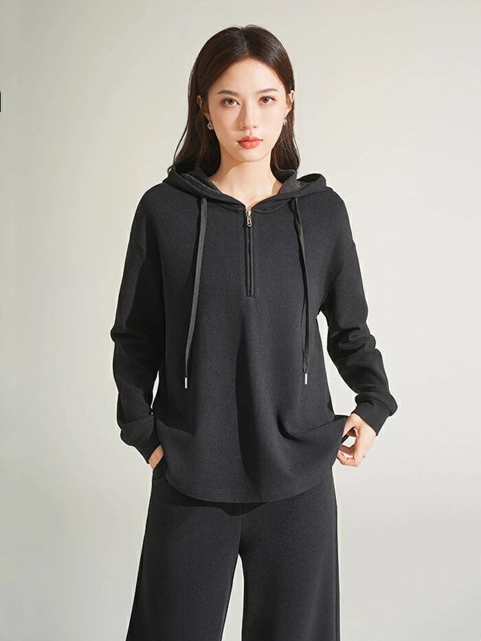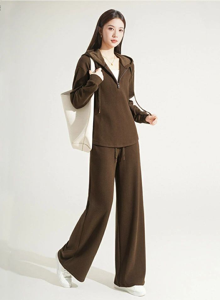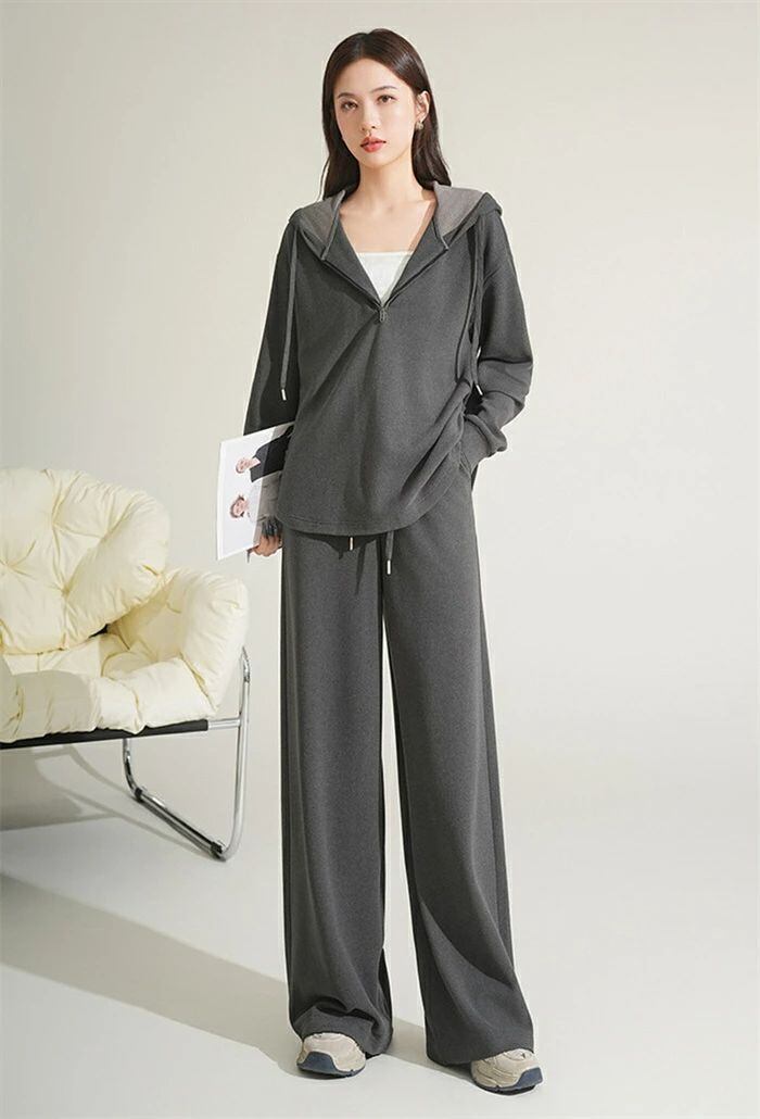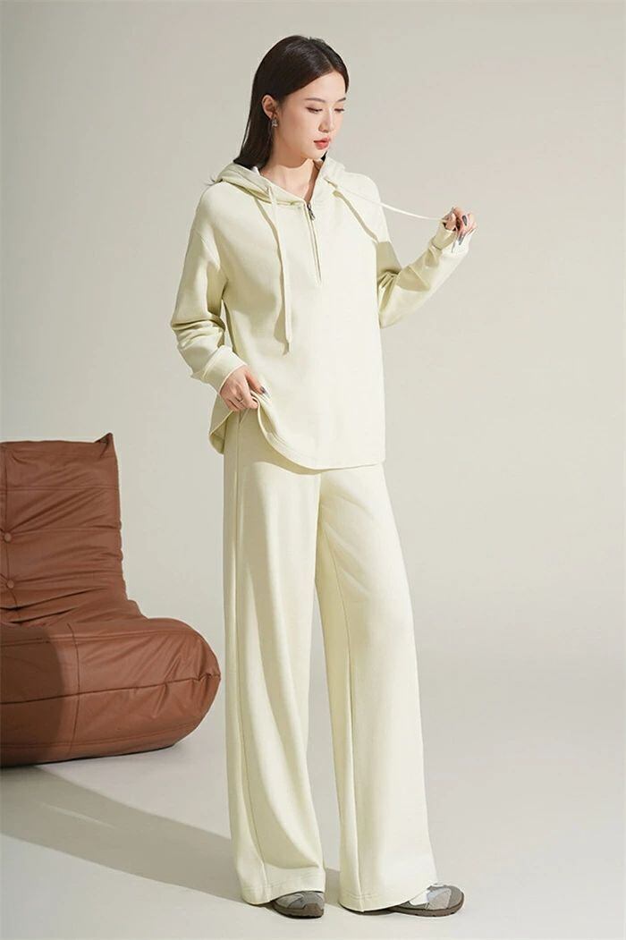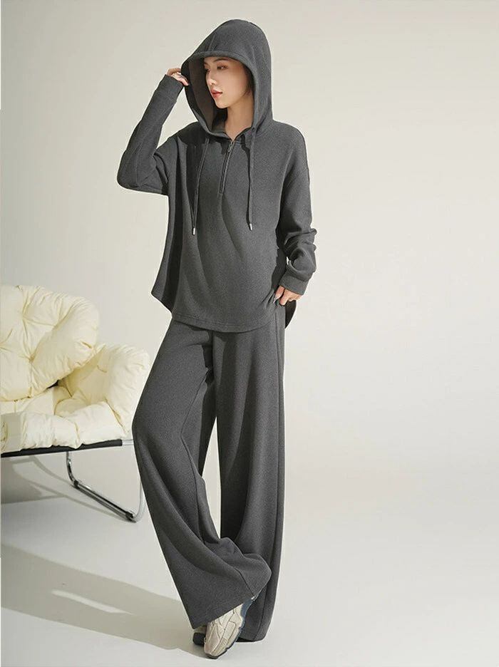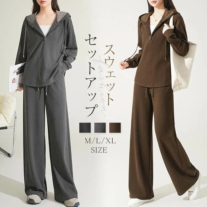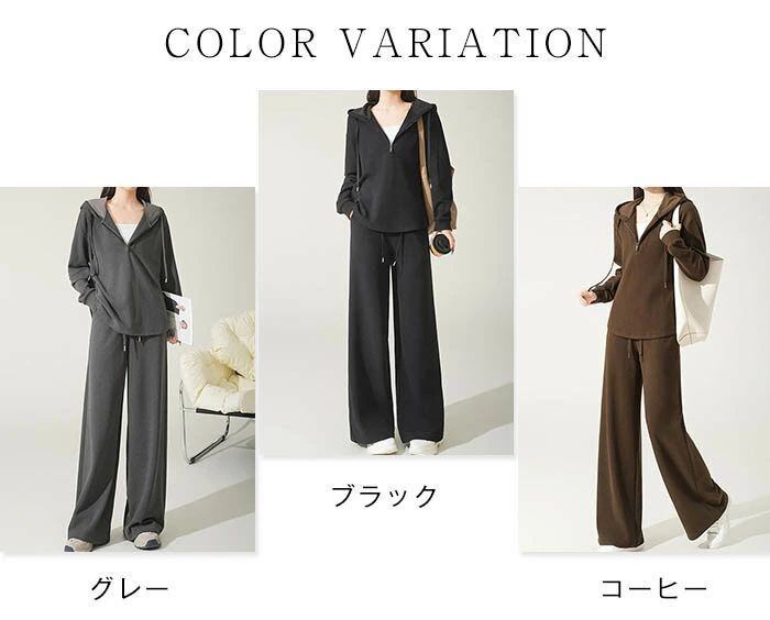 セットアップ スウェット レディース 2点セット パーカー ハーフジップ 長袖 フード付き プルオーバー パンツ ワイドパンツ 無地 楽ちん ト