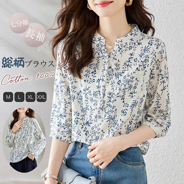 シャツブラウス レデイース きれいめ シャツ トップス おしゃれ 通勤 OL 大人 上品ブラウス オフィス レディース 七分袖 長袖 総柄 ブラウス レディース 春 夏 秋 7分袖 花柄シャツブラウス トップス ブラウス 森ガール ゆったり シルエット 細見せ 可愛い 体型カバー 通勤 入園式 卒業式 綿100% 上品 高級感 30代 40代 50代 ゆったり シルエット 細見せ 可愛い 体型カバー 通勤 入園式 卒業式 綿100% 大人 通勤 OL ゆったり シャツ 30代 50代 可愛い おしゃれ 送料無料