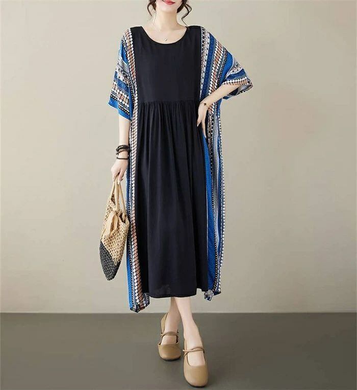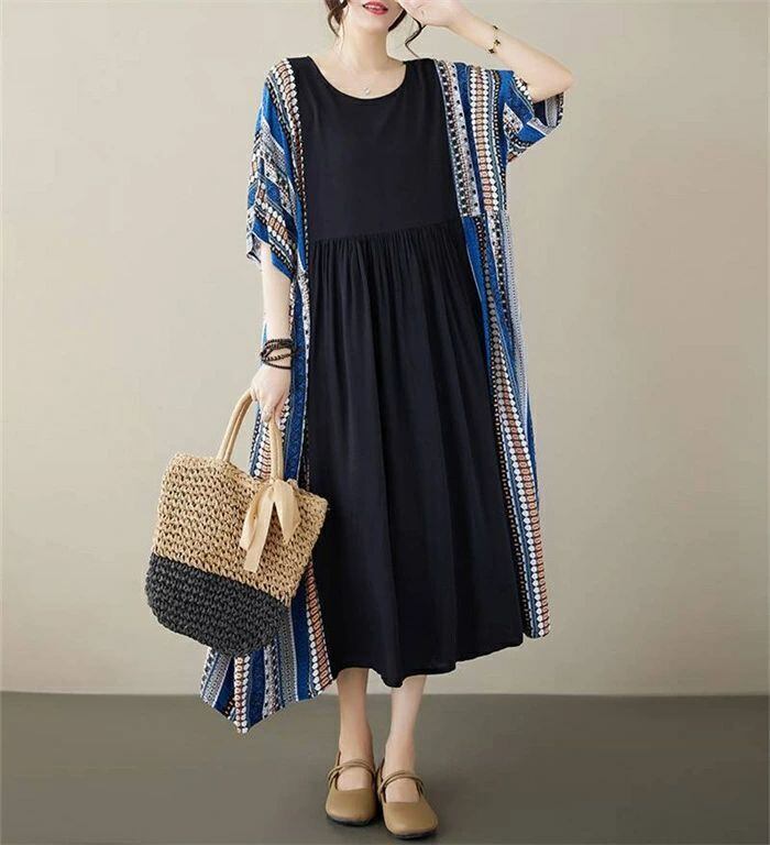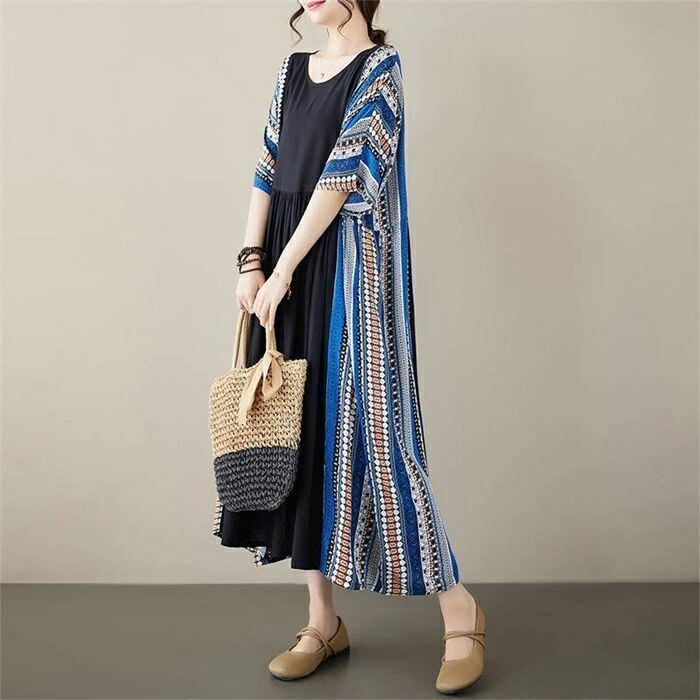 ワンピース 切り替え レディース 夏 ロングワンピース 切り替えワンピース マキシワンピース ロング丈 大きいサイズ クルーネック マキシ エスニック Aライン フレア ゆったり 体型カバー 着痩せ 大人 カジュアル シンプル 森ガール 可愛い 20代 30代 40代 50代 送料無料