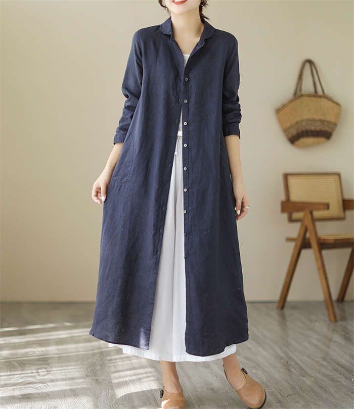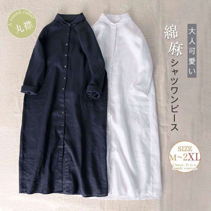 シャツワンピース レディース ロングシャツワンピース 綿麻ワンピース 大きいサイズ 春秋 ワンピース チュニック ロング チュニックワンピ