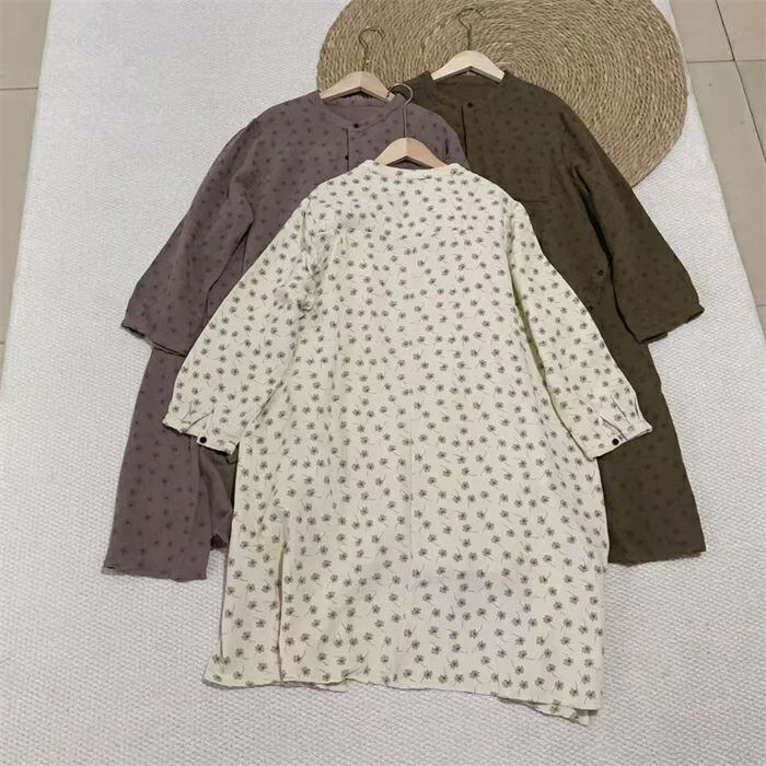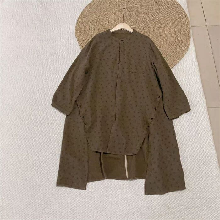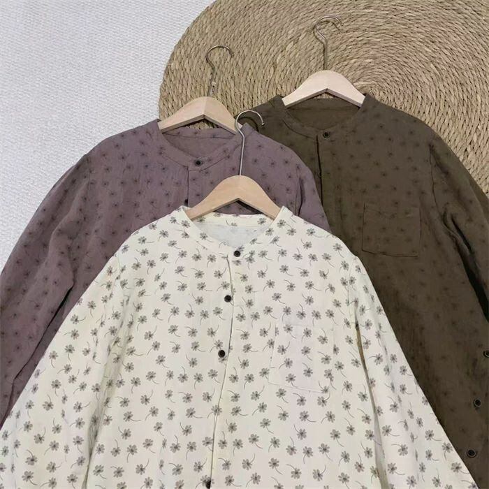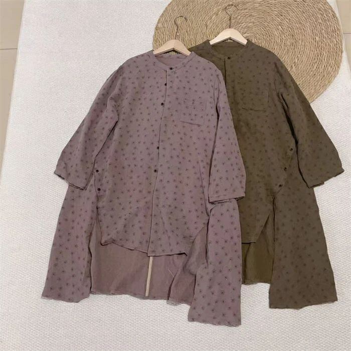 ガーゼ シャツ レディース 長袖 ダブルガーゼ 綿100% シャツブラウス ガーゼシャツ シャツ ブラウス 長袖 トップス 2重ガーゼ カジュアル ナチュラル 花柄 総柄 バンドカラー 前後差 大きいサイズ 通気性 柔らかい 体型カバー 柔軟 着回し 通勤 春 秋 冬 シンプル カジュアル ナチュラル 着回し 定番 ビジネス OL 通勤 送料無料