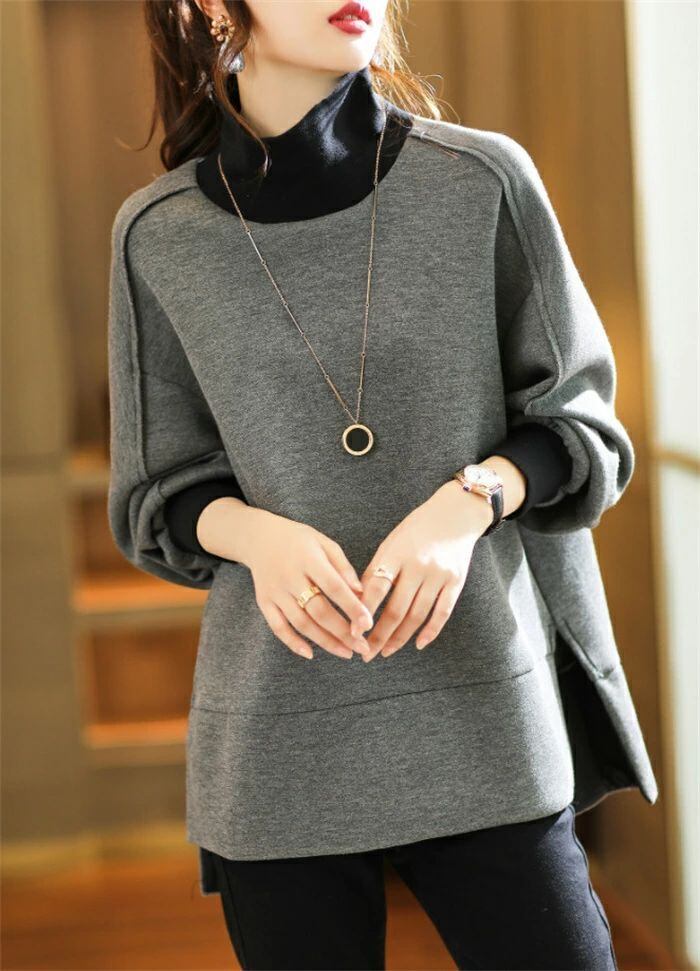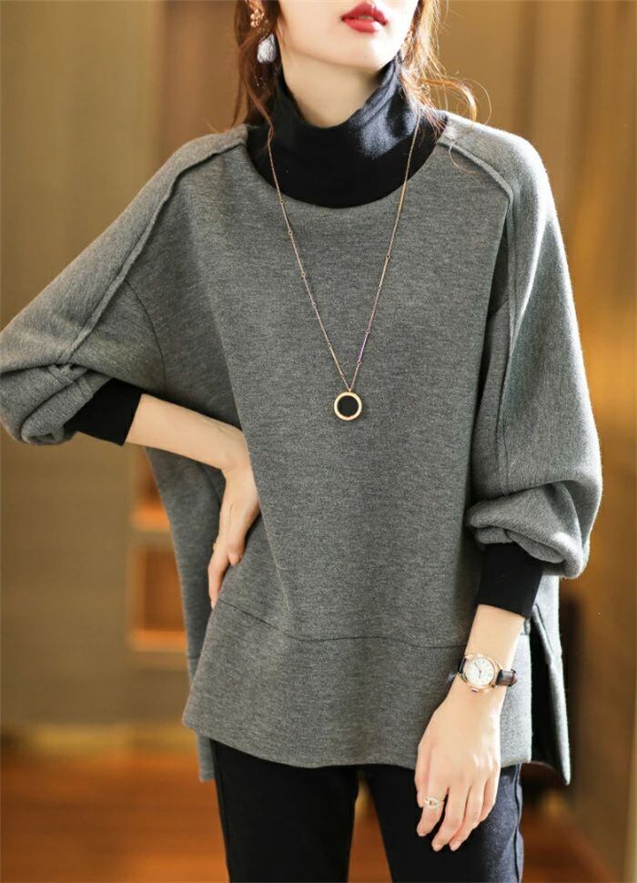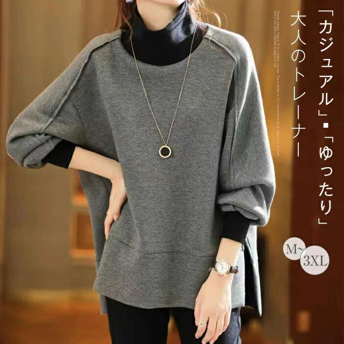 トレーナー パーカー レディース 長袖 トップス スウェット tシャツ おしゃれ 冬 暖かい あったか ハイネック 春 秋 防寒 ルームウェア シンプル 大きいサイズ ビッグシルエット 大きめ 着痩せ お洒落 普段使い お出かけ 日常 ディリー 20代 30代 40代 50代 グレー